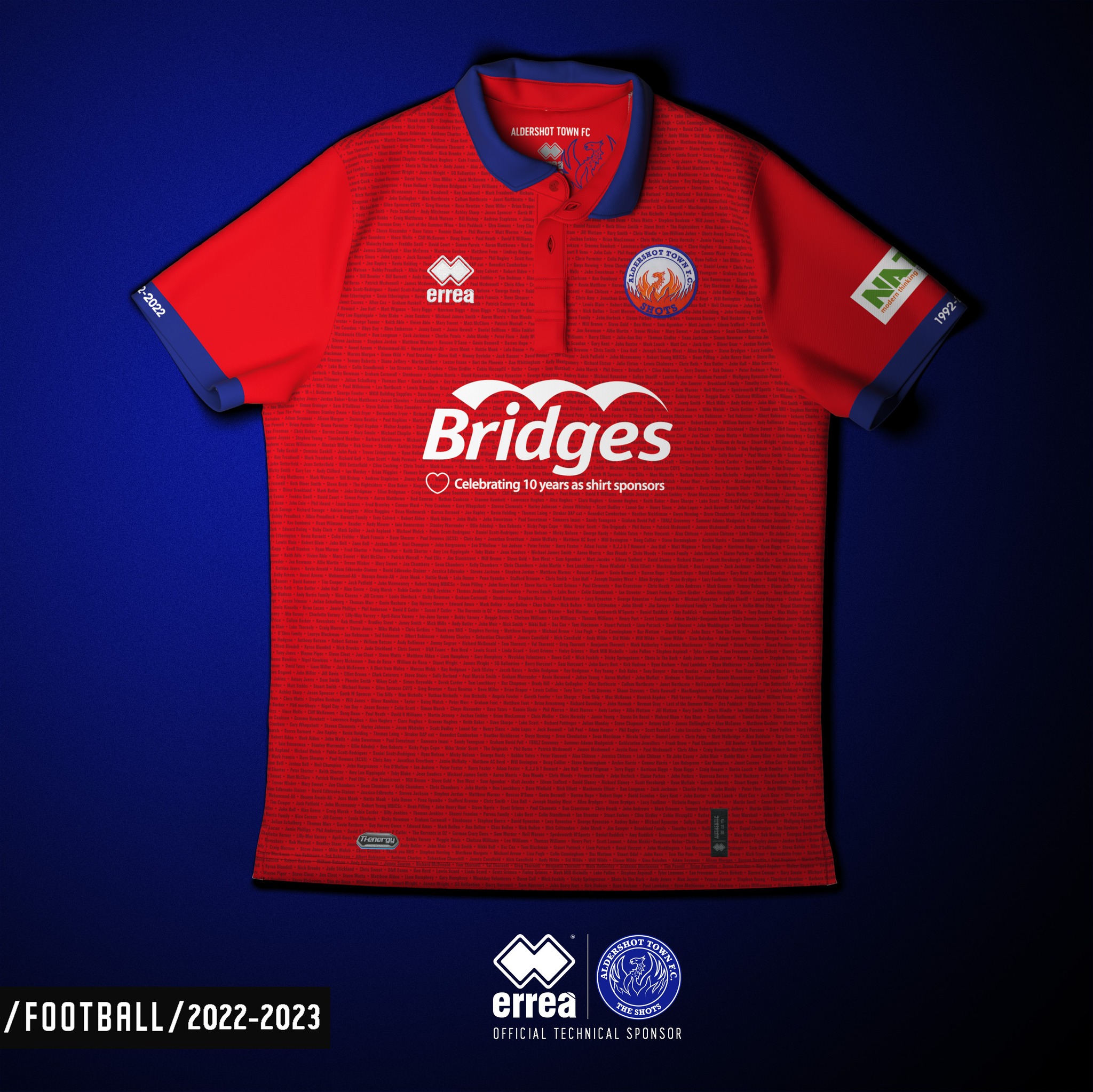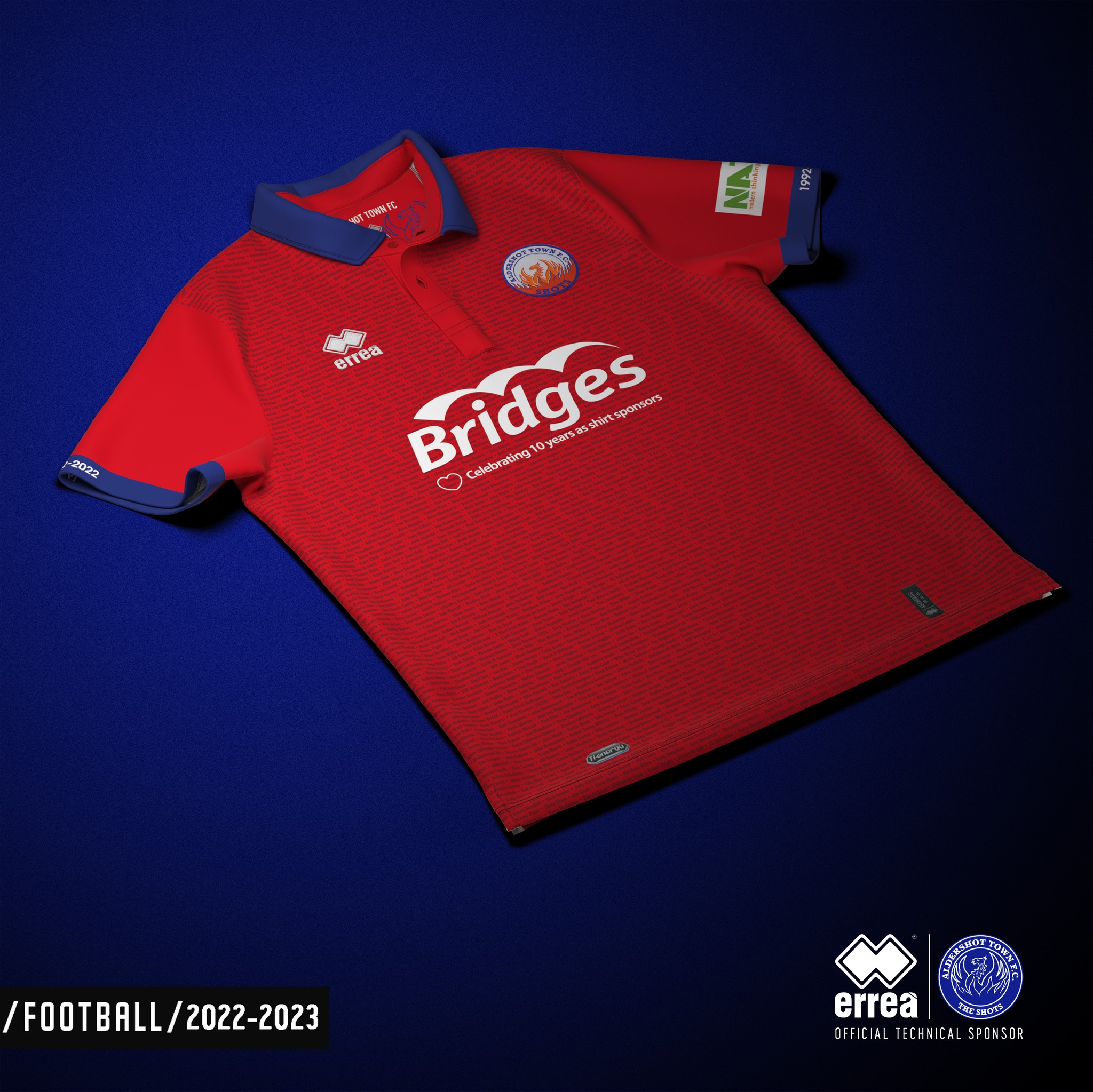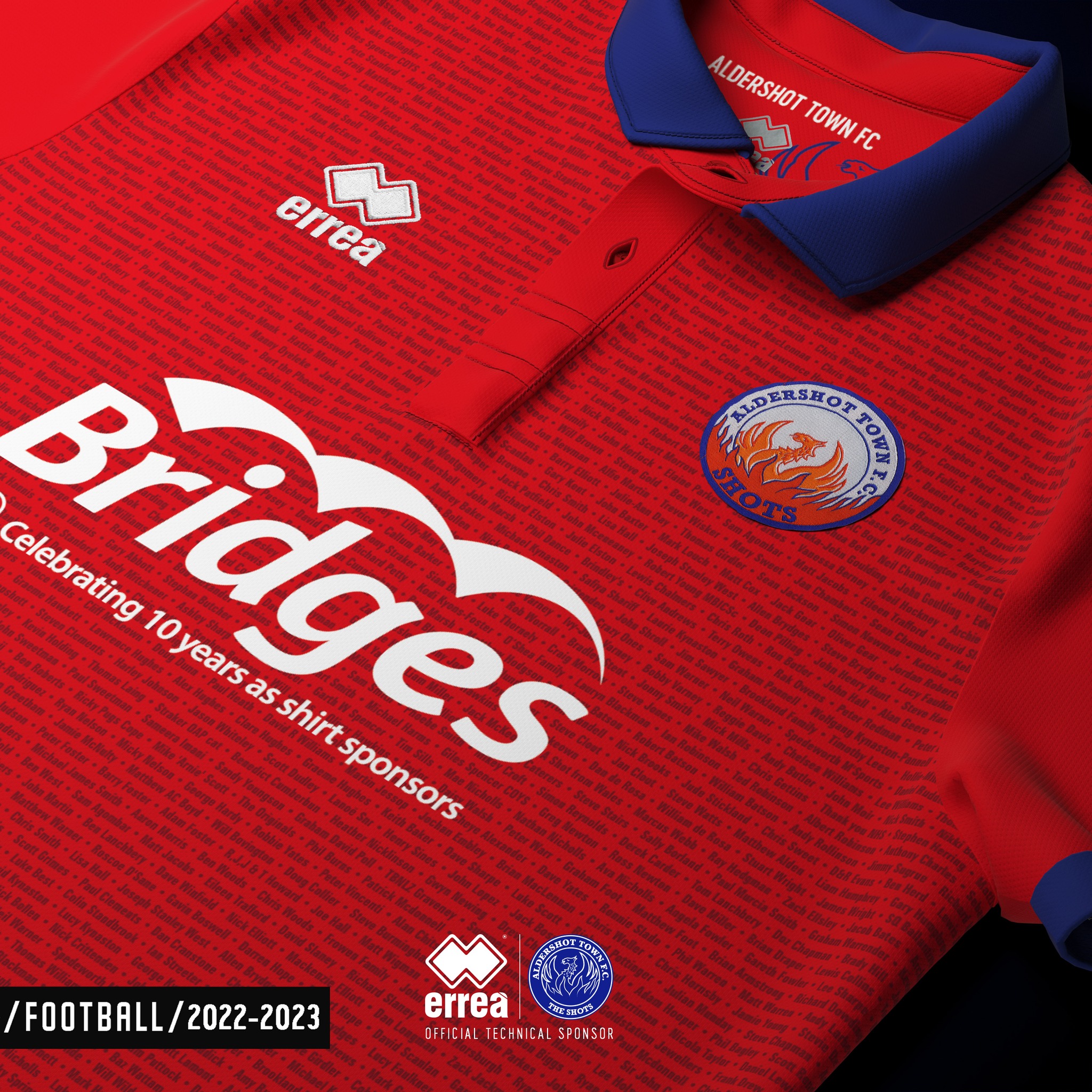 The shirt also celebrates 10 years of Bridges Estate Agents being the official shirt sponsor with a change to their logo for also the first time in 10 years.