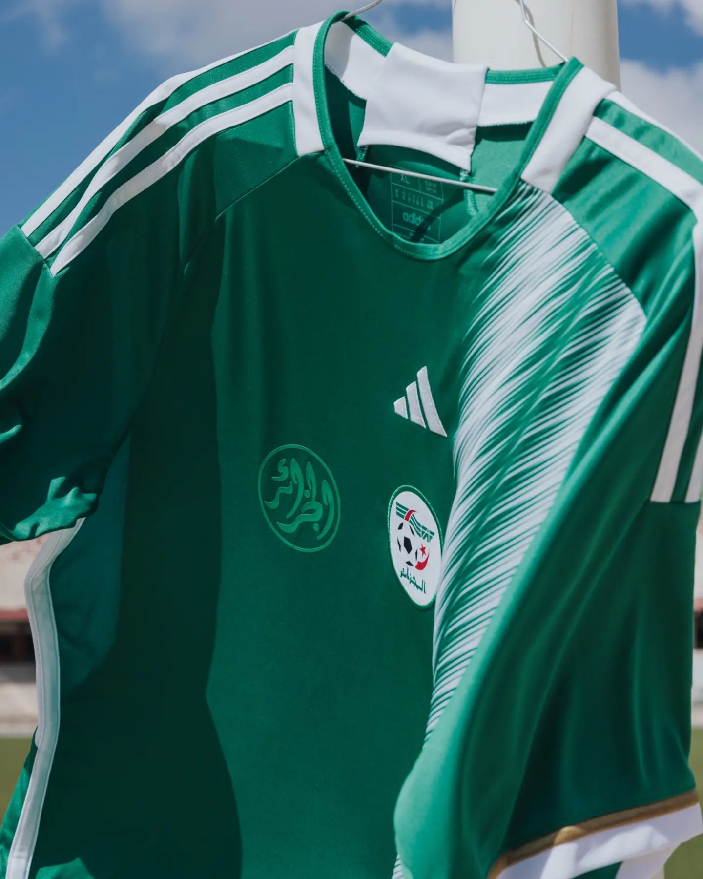 Styled to nod to “Fennec Foxes” shirts from the 1980s - including the version worn at the 1982 World Cup in Spain - the adidas release boasts a green base with white embellishment running down one side of the trunk.