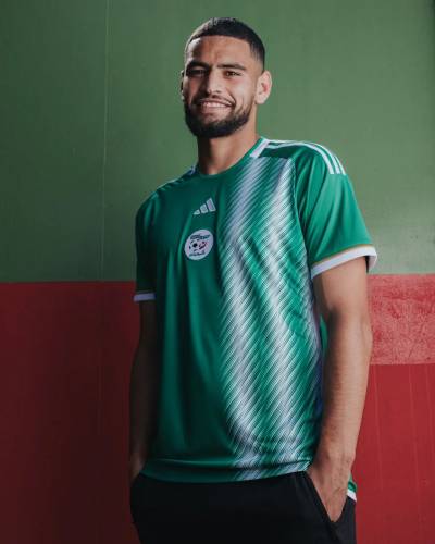 The centrally placed crest is in full colour, while there is a “ghost” version of the 1982 identifier, with this year marking the 40th anniversary of that mundial appearance, and the shirt gold-trimmed shirt will be combined with green shorts and socks as first choice.