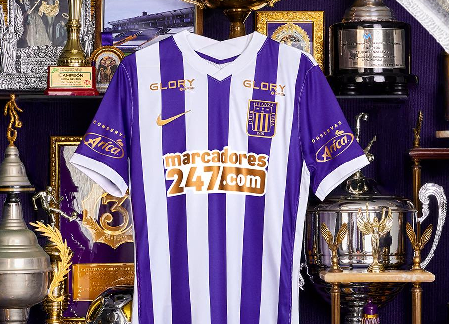 The neck and the cuffs, on the purple sleeves, are in white, while the said metallic tone provides the current Peruvian champions’ partner logos and the detailing on the crest - as well as the US supplier’s “Swoosh” logo.