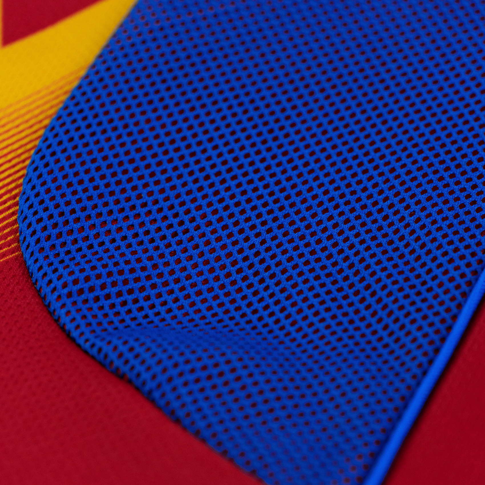 The 2022-24 first-choice design is in red with a zigzag motif in yellow and blue, while the change is in blue with said pattern more subtly applied.