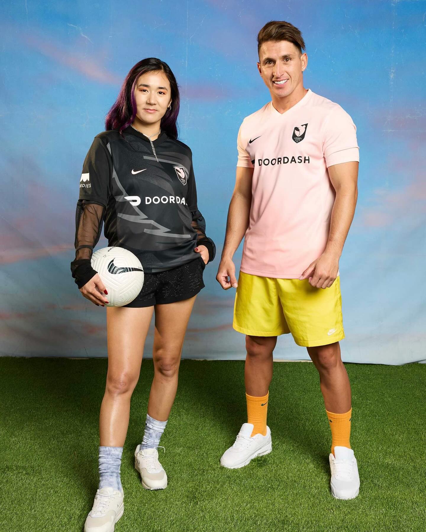 The new Nike home shirt for the Los Angeles-based side - dubbed the “Moonlight Jersey” - is in greyscale with patterning taken from the wing design on the crest, which appears in black, white and "Sol Rosa" (pink), and the “Sol” away release is in tones of pink with a gradient effect to represent a sunrise.