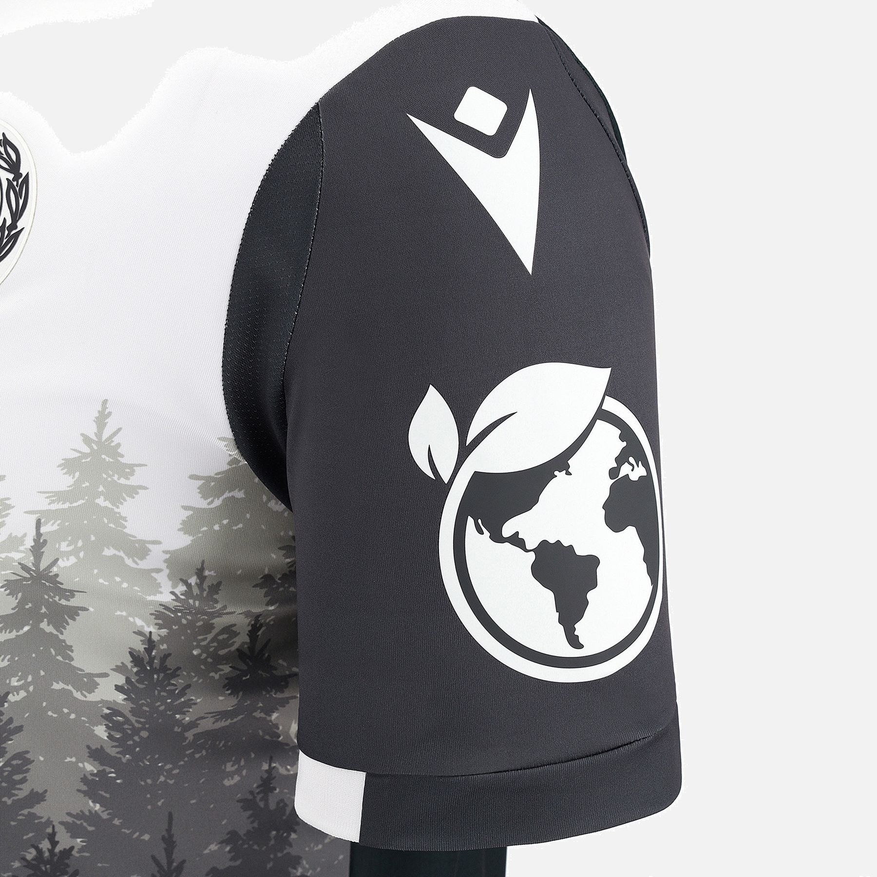 Grey shorts with white drawstrings and white socks complete the special kit. The main fabric used for the jersey is Eco-Softlock, and the presence of Eco-Mesh inserts makes the garment exceptionally light and perfectly breathable.