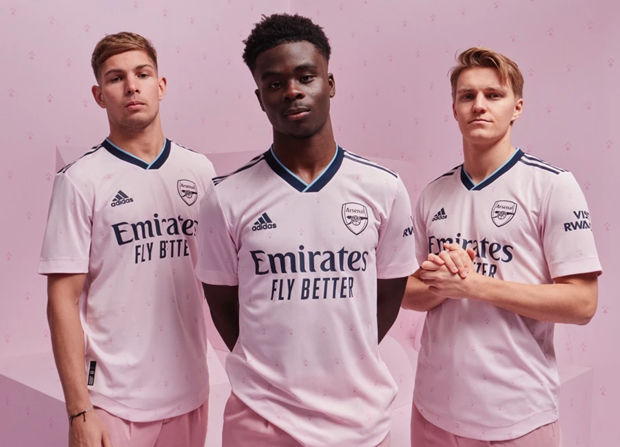The kit, which is the first pink outfield jersey in the club's history sees the return of the Ermine pattern, an icon first seen on the Arsenal crest in the late 1940s, which also displayed the club’s motto; “Victoria Concordia Crescit” or “Victory Through Harmony” – a phrase which is still adopted and used by Arsenal to this day.