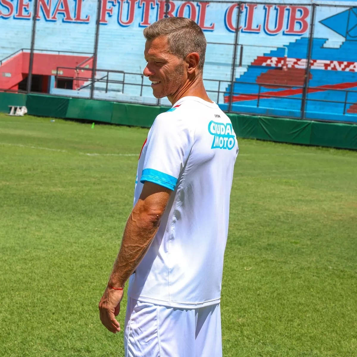 The 2024 white design for this particular Arsenal FC is a throwback to the team’s adidas change look in the late 1990s and early 2000s, including in the 2002 maiden promotion to Argentina’s top flight, with a diagonal sash made up of three stripes - two in red sandwiching one in blue.