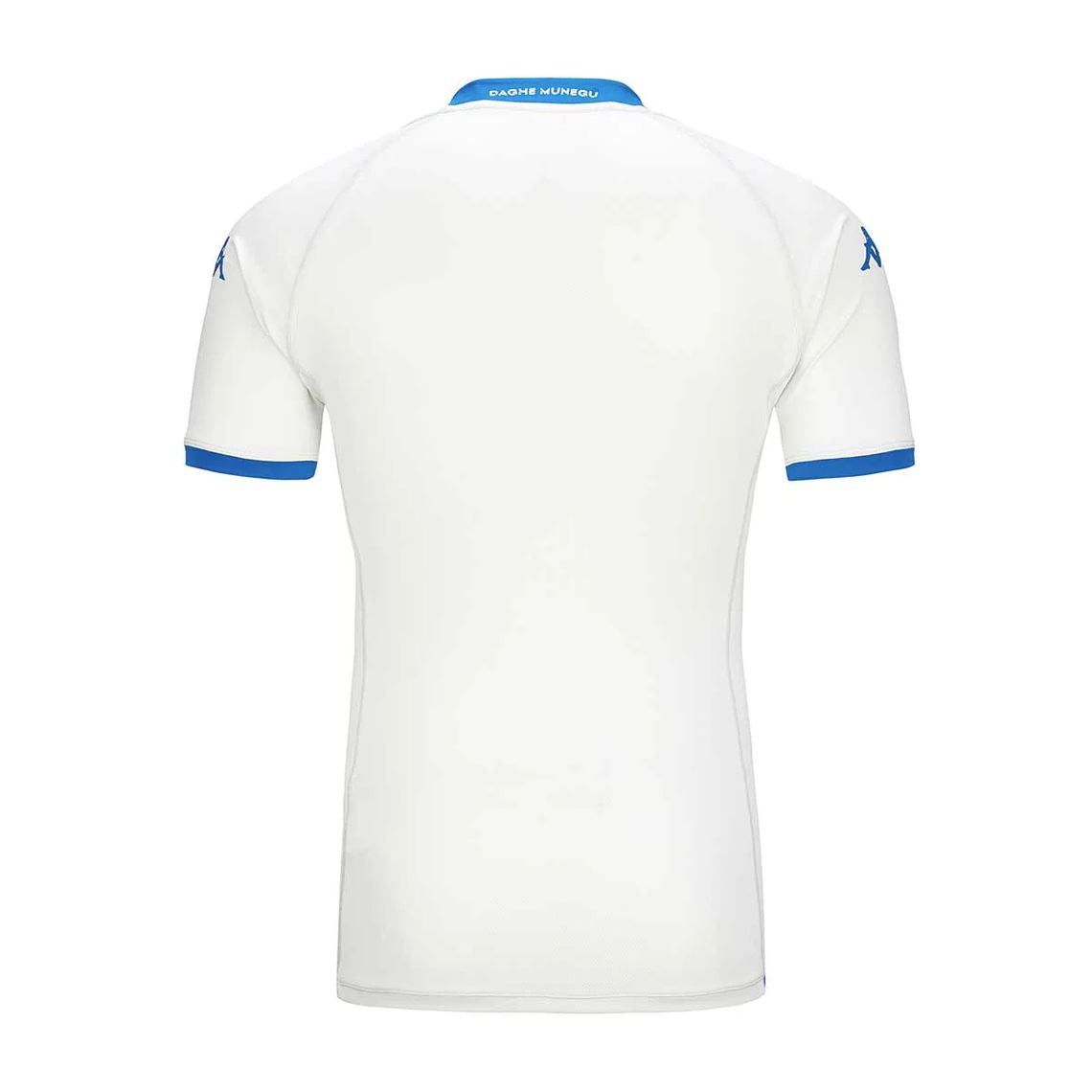 The 2023-24-season secondary-change release for the Monégasque side has been produced by Kappa in association with l’Institut océanographique de Monaco (the Oceanographic Institute of Monaco) and takes the halved look that Monaco wear as first choice and somewhat recreates in blue and white and incorporating a gradient.