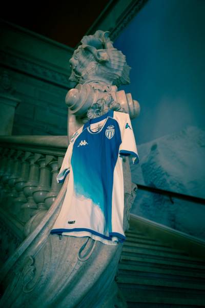 Marketed as nodding to the blue of the Mediterranean Sea and the white of the Riviera shore - and the white of the Musée océanographique de Monaco (Oceanographic Museum of Monaco) - the Ligue 1 (France) side’s shirt, dubbed OCEANO and dedicated to the marine world, will form a kit with dedicated white shorts and socks.