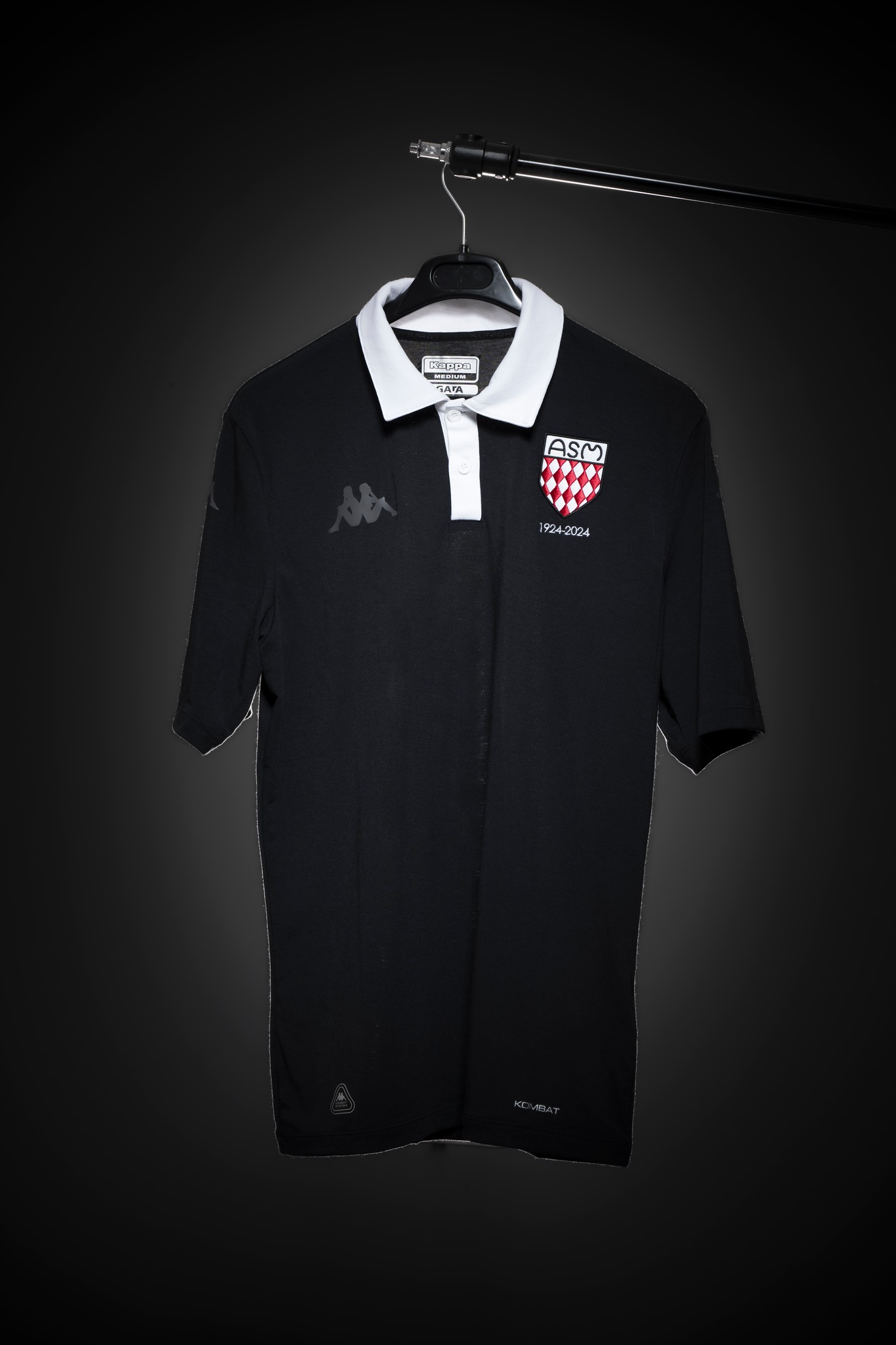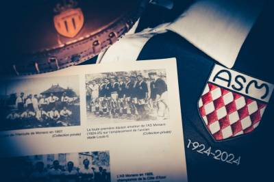 The crest on the chest is an embroidered replica of the original, showcasing the letters 'ASM' above red and white lozenges, symbolising the Grimaldi family coat of arms. The dates ‘1924-2024’ mark the centenary, with the official centenary logo on the back. The jersey’s numbers will include the names of legendary players and coaches, while the Kappa logo is subtly applied in tone-on-tone.