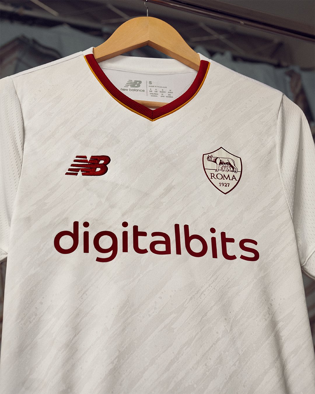 Similar to the home jersey, the words “Figli di Roma” ("Sons of Rome") are placed on the back of the neck, in tribute to the bond between the city, the team that bears its name, and those who wear the jersey
