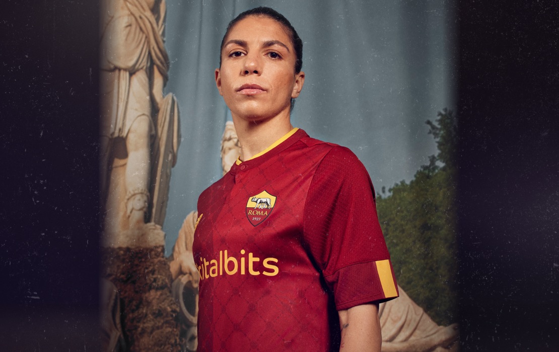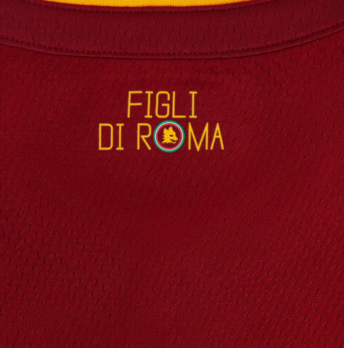 The words “Figli di Roma” are placed on the back of the neck in tribute to the bond between the city, the team that bears its name, and those who wear the jersey.