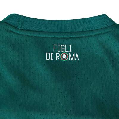 The replica version of the Legacy strip includes a holographic badge, alternating between the circular crest and the crest with a she-wolf and ASR monogram, similar to this season's third kit.