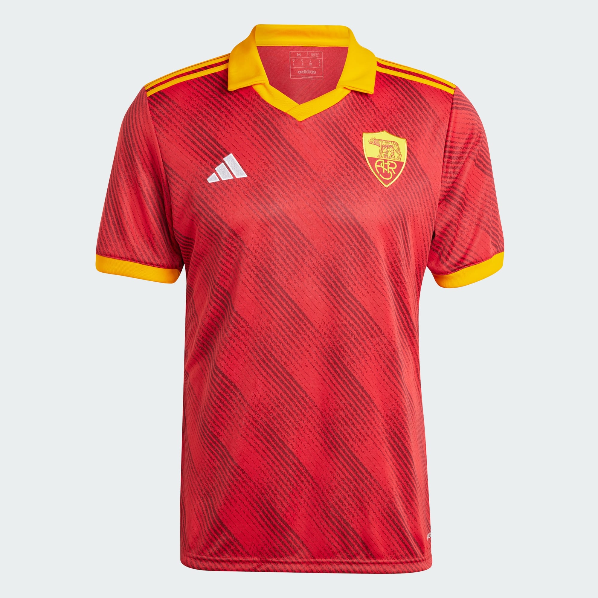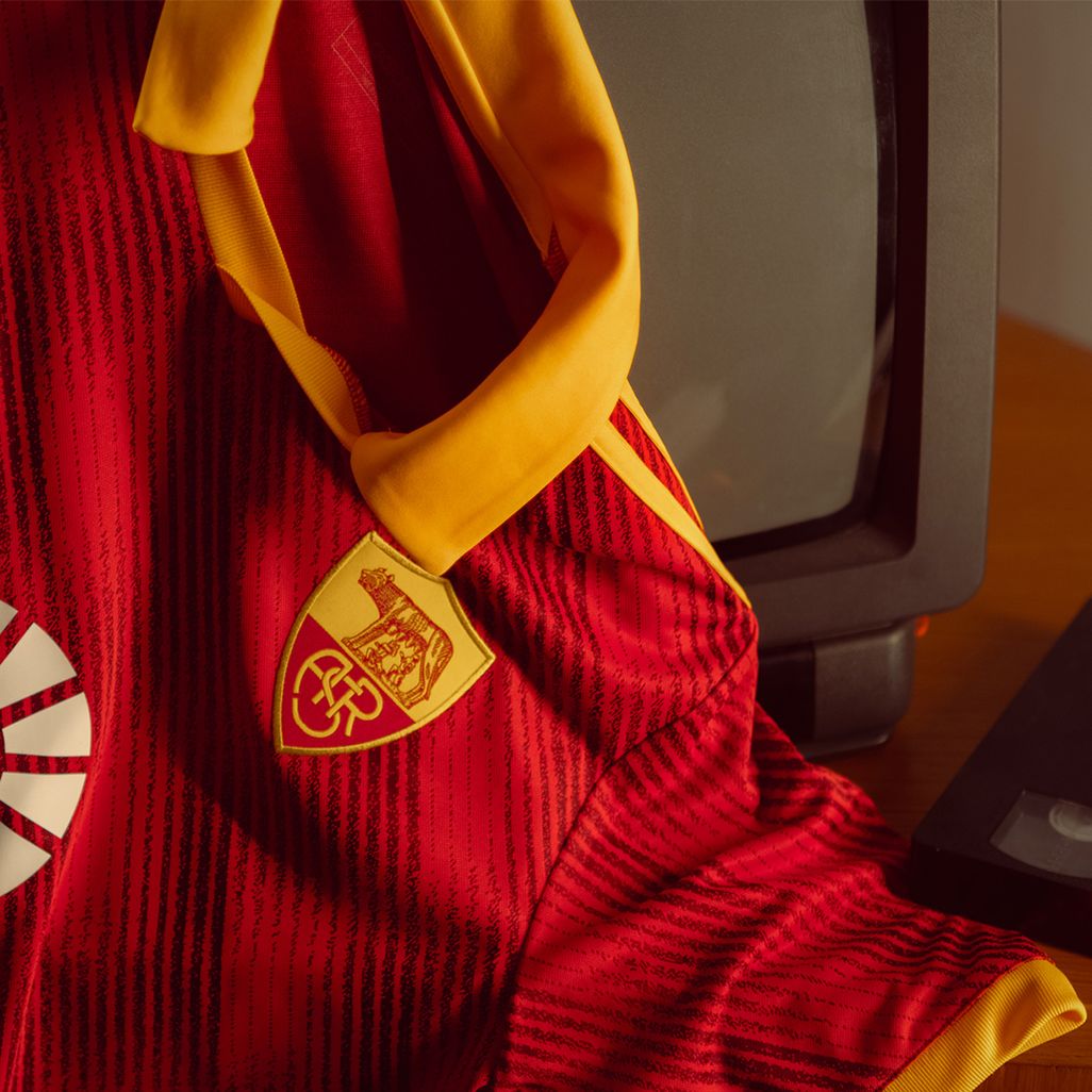 This new 2023-24 shirt from adidas is in the Giallorossi’s recognisable tones of red and yellow with a base pattern and evokes the look of several designs from the 1990s and 2000s, particularly the 1991-92 Home release.