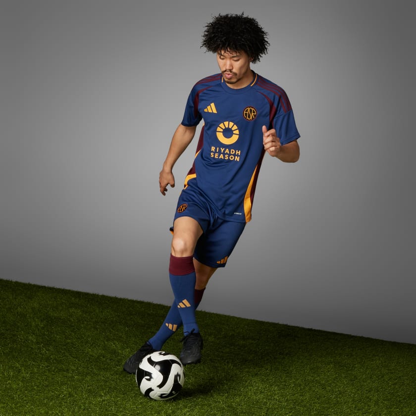 The 2024-25 secondary-change release for the Serie A side based in the Italian capital is dedicated to the Testaccio area of the city and echoes the much-lauded 1991-92 equivalent in its dark-/navy-blue, deep red and yellow colouring.