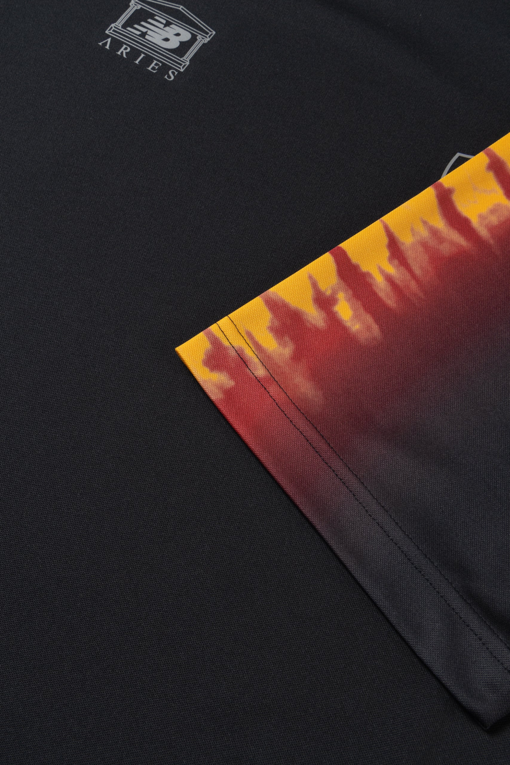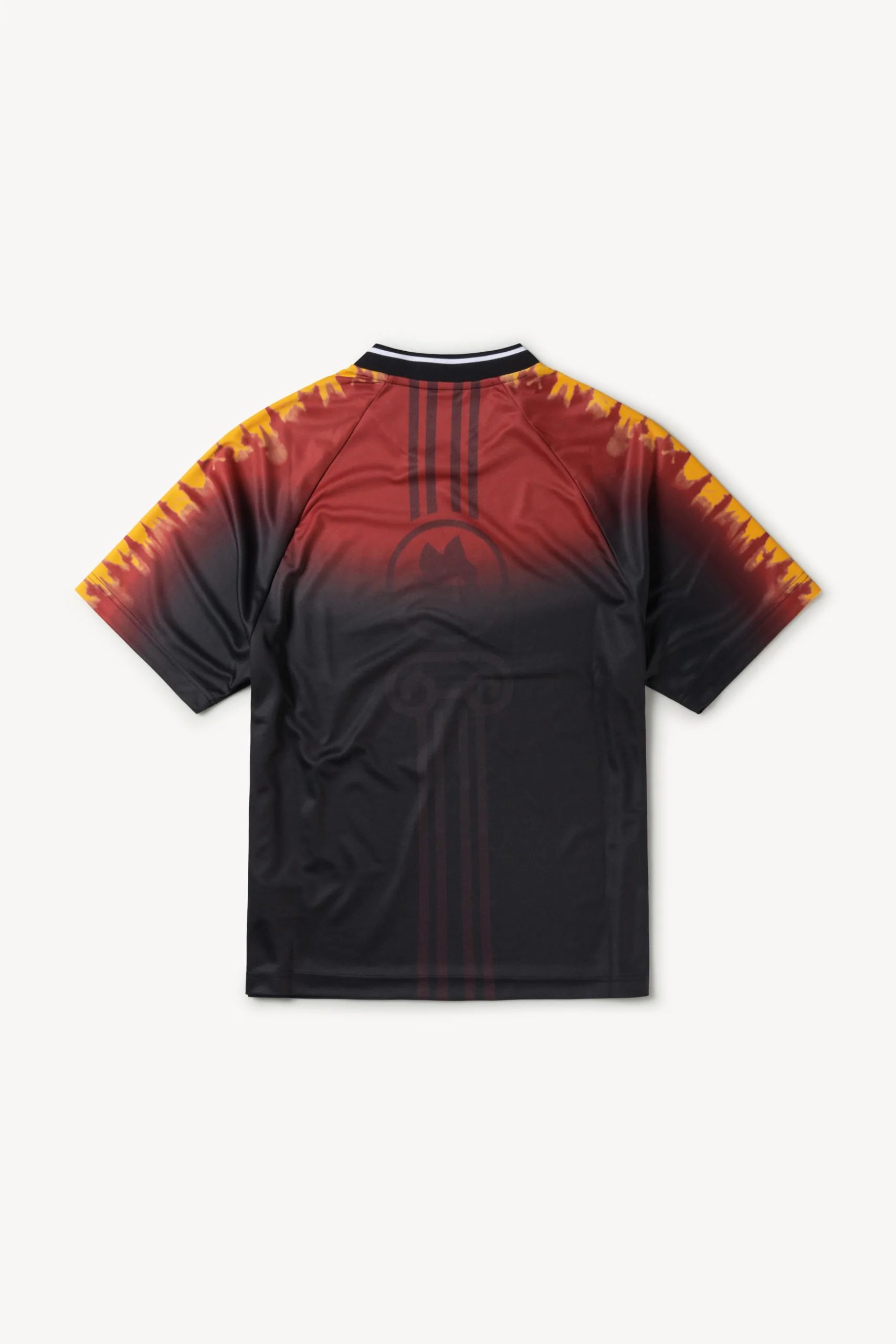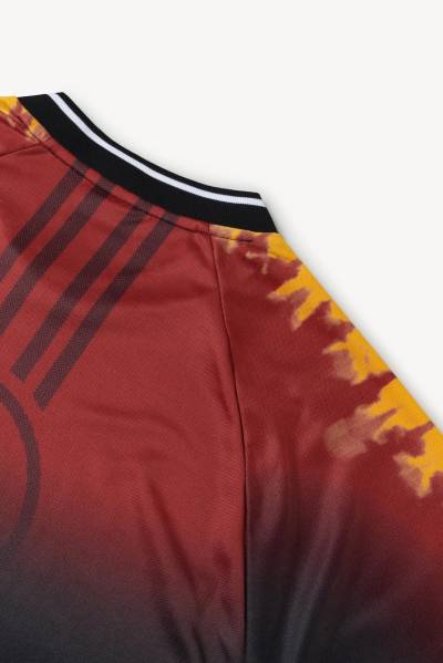 This AS Roma X Aries 2022 New Balance Pre-Game Jersey is featuring a giallo rosso tie-dye digital print on the shoulders and logo detail on the back.