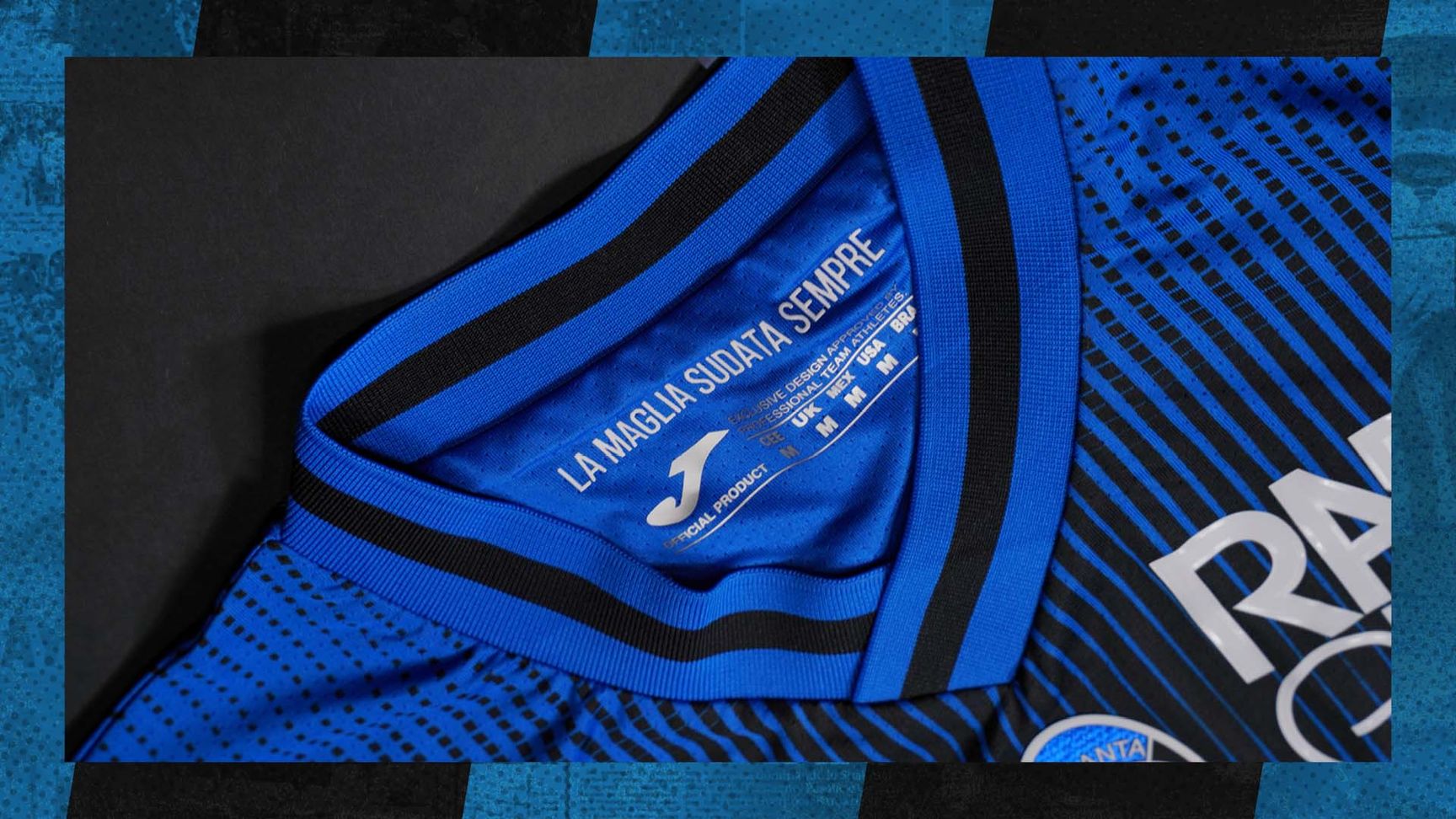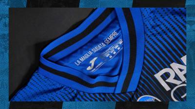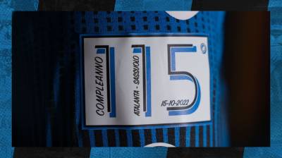 To be worn with the standard Home shorts and socks in the 17th October match against Sassuolo, the special Joma design is a twist on the standard black-and-blue first-choice colours (stripes) and boasts a commemorative patch.
