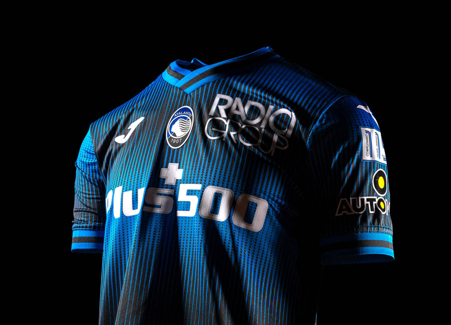 To be worn with the standard Home shorts and socks in the 17th October match against Sassuolo, the special Joma design is a twist on the standard black-and-blue first-choice colours (stripes) and boasts a commemorative patch.