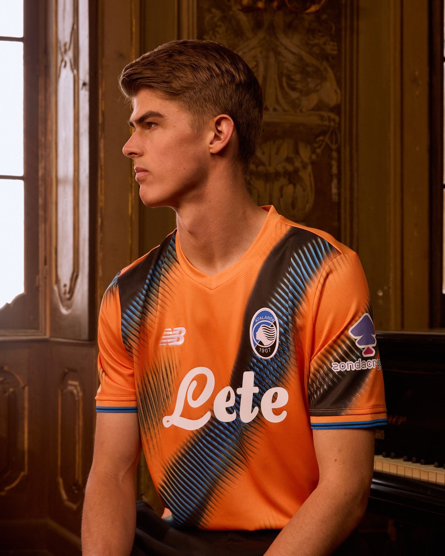 The design takes inspiration from the flowing hair of Atalanta, as seen in the club crest, and symbolises the dynamism of the supporters. A subtle detail on the inside collar reads La Maglia Sudata Sempre (Always Sweat for the Shirt), while the back of the shirt carries the wording Atalanta Bergamo.