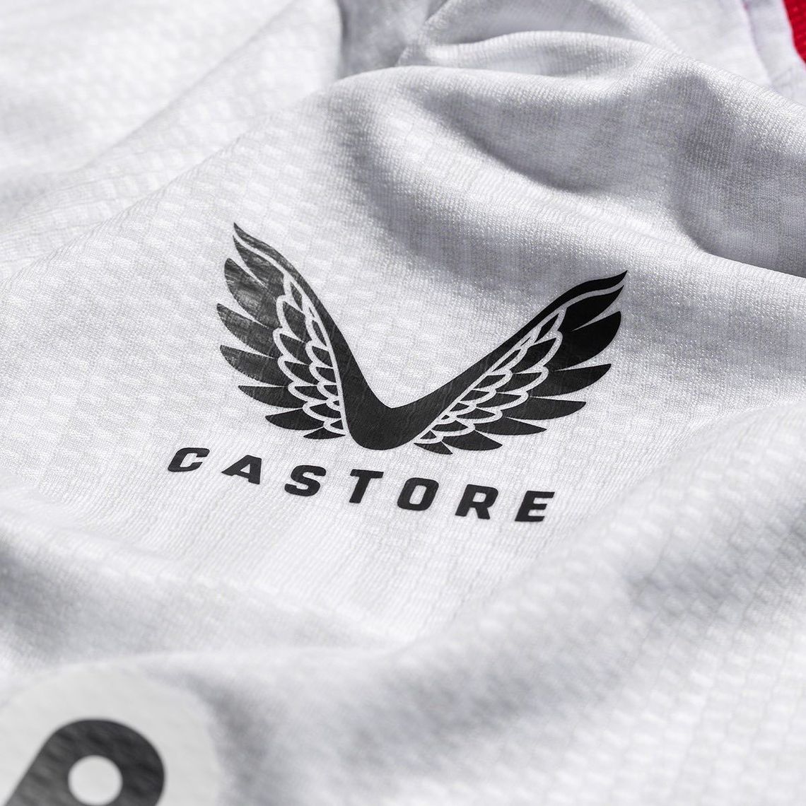 Trim is in red, the crest is in full colour and the kit is completed with the white Home Alternate (change) shorts and socks.