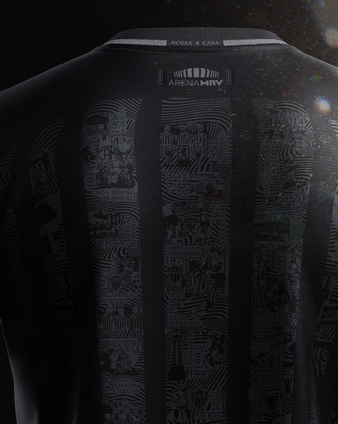 Despite being limited to greyscale - grey/silver embellishment to a black base - the shirt features thin stripes to nod to the first-choice colours and, between these, images which refer to famed moments in the Galo’s history.