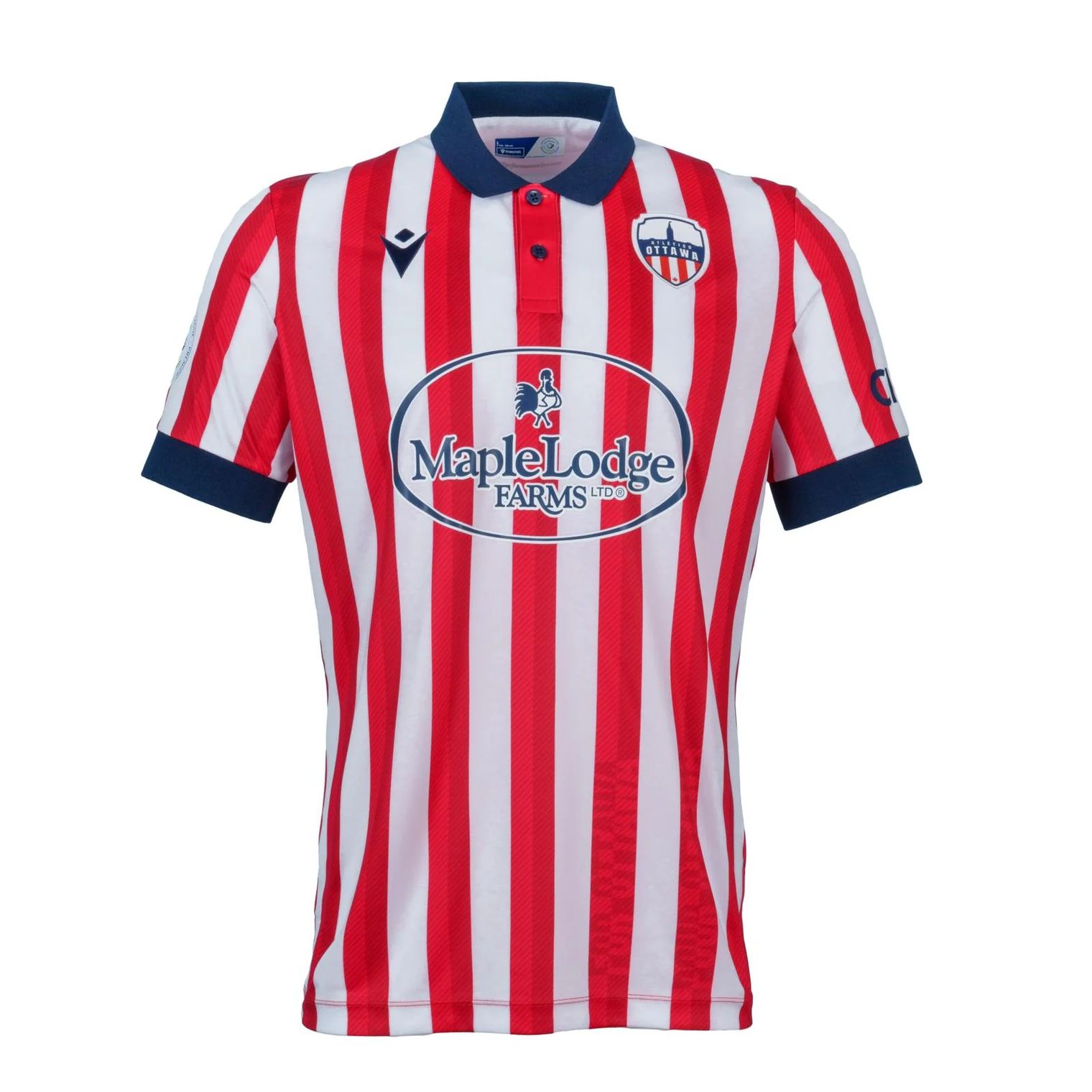 The new “Community First” “Primary” release from Macron is very much influenced by the Spanish La Liga parent club, with the Madrid-based giants’ look aped in the stripes in tones of red and white and the deep-/navy-blue collar and cuffs - though local pride is clear in the “FOR OTTAWA” and “POUR OTTAWA” details to the trunk and a focus on local food insecurity in the launch.