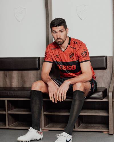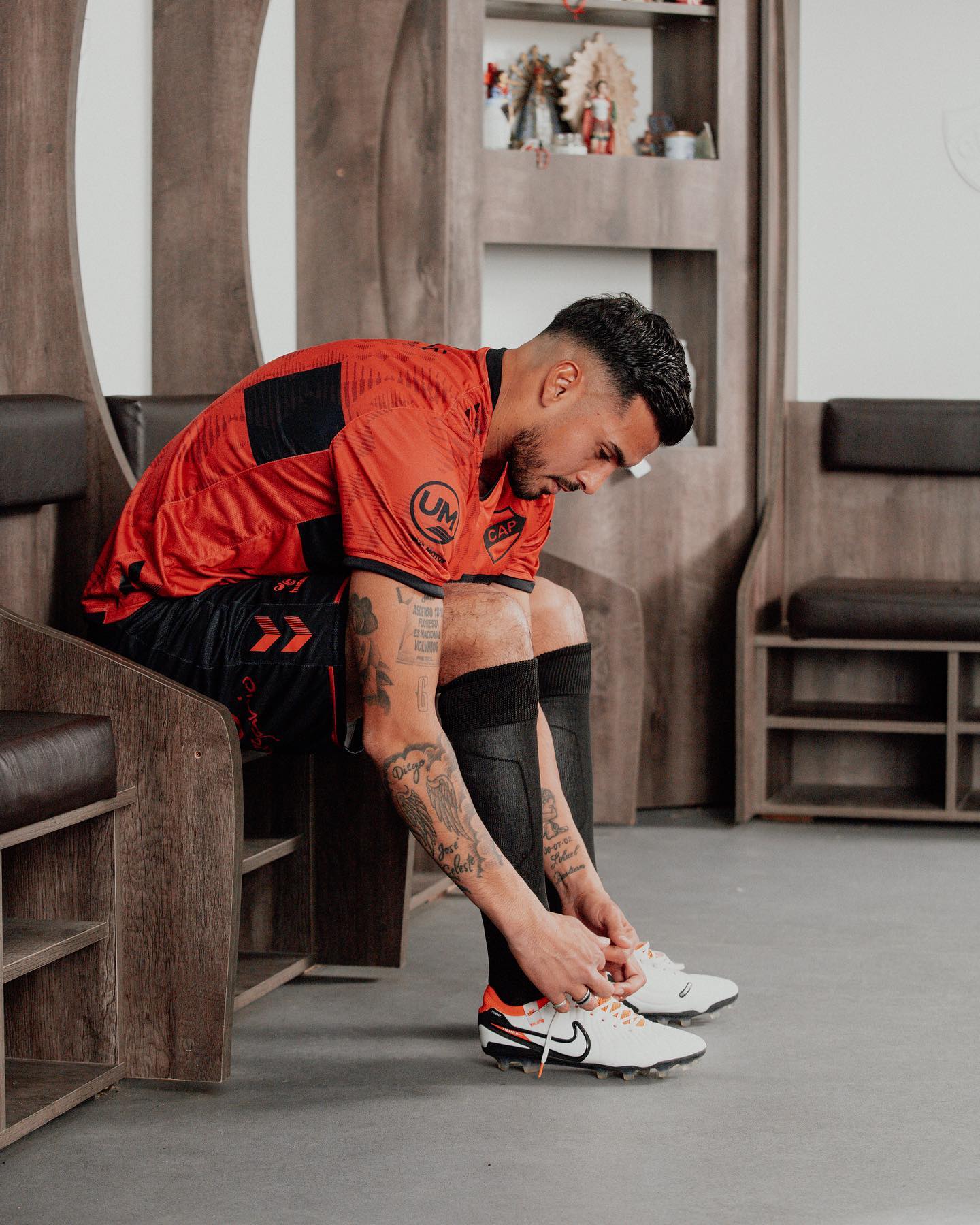 The 2024 Hummel tertiary release for the Argentine Primera División side is in orange/red and nods to the colours of the horse stable from which Calamares were born.
