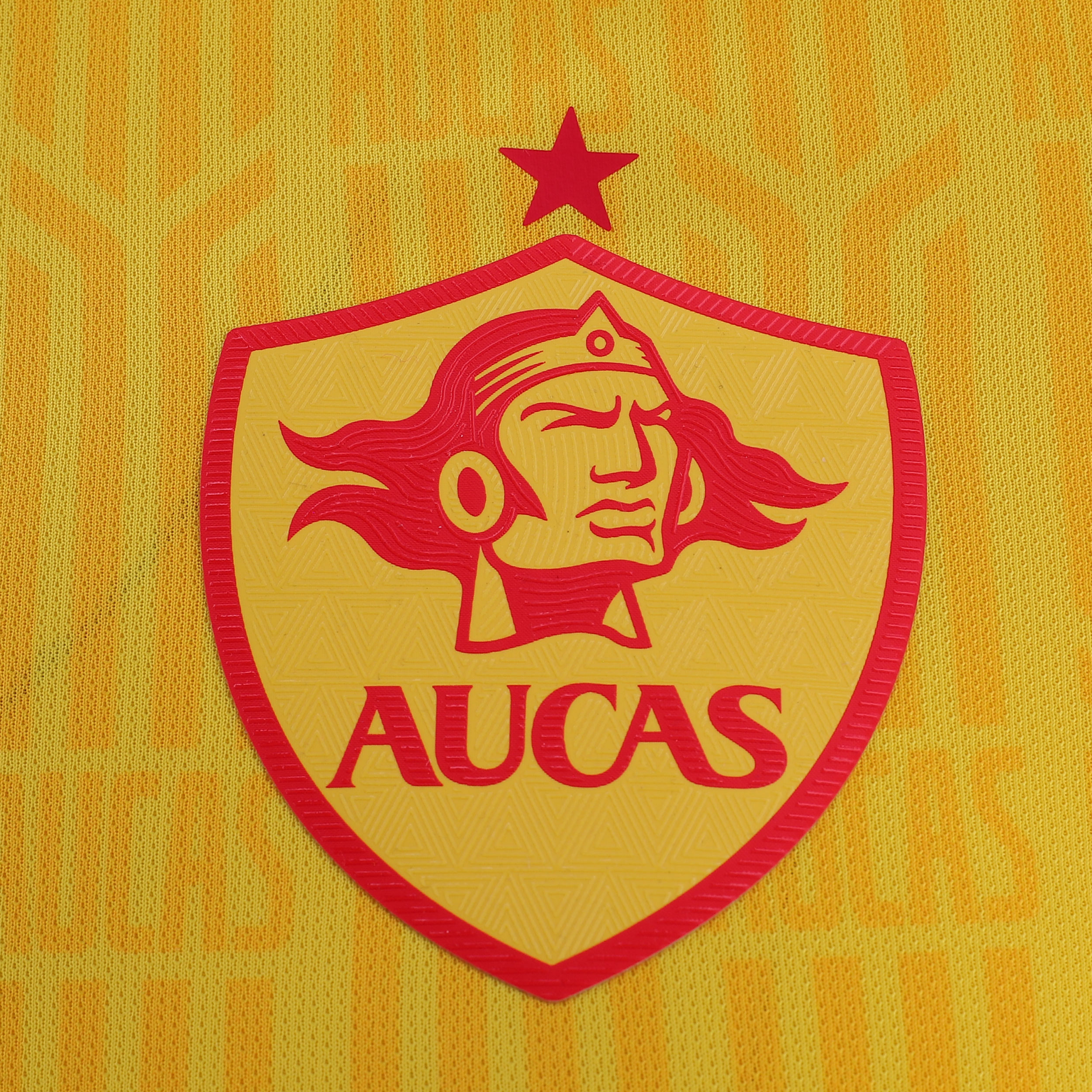 The “Papa Aucas” crest is present and correct and the shirt was debuted with red shorts and white socks to form a kit.