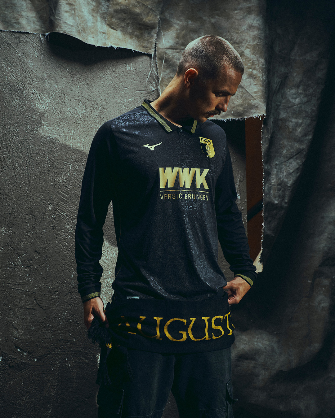 The Mizuno design draws inspiration from ancient artefacts found in Augsburg, integrating Roman symbols into a modern football kit.