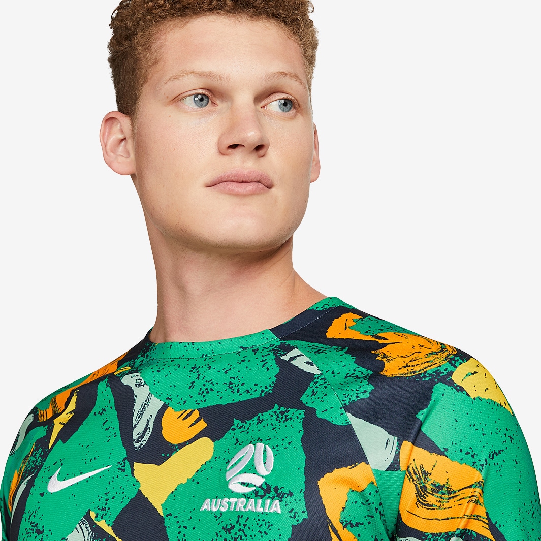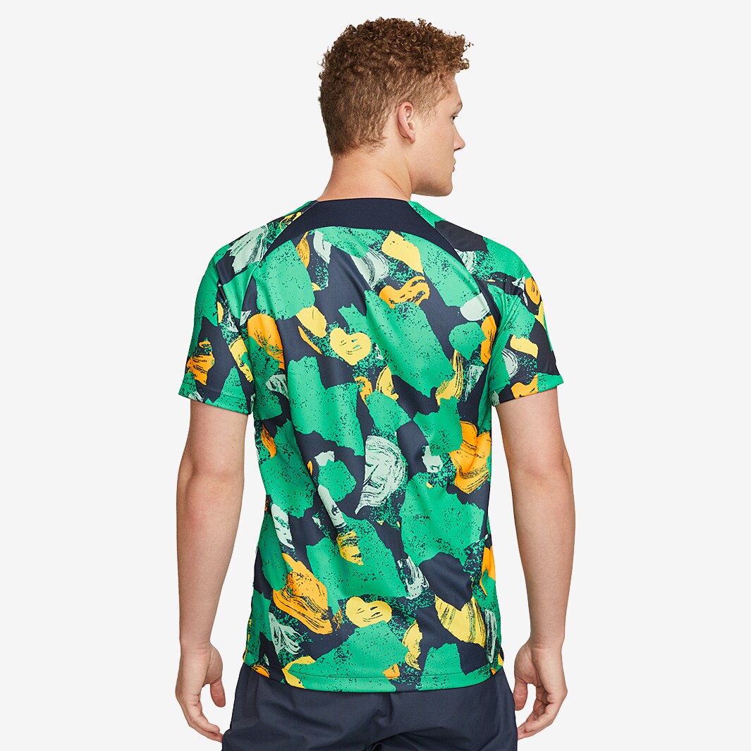 Based on the jersey worn by Awer Mabil, Aaron Mooy, Mathew Leckie and the rest of the team as they warm up and train for Qatar 2022, the 2022/23 Dri-Fit Pre-Match Shirt is packed with high-performance materials and features an abstract yellow and green print.