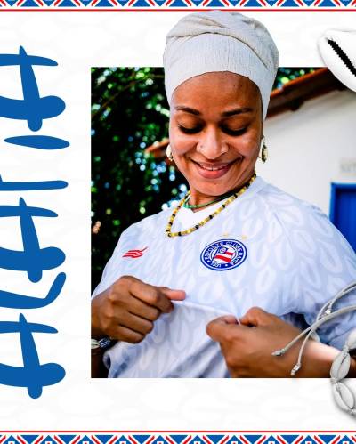 The Campeonato Brasileiro Série A side’s new special release, in white and blue and featuring Afro-Bahian prints by artist Alberto Pitta, is billed as “Aláfia” and honours African-based religions as part of an initiative centred on fighting religious racism.