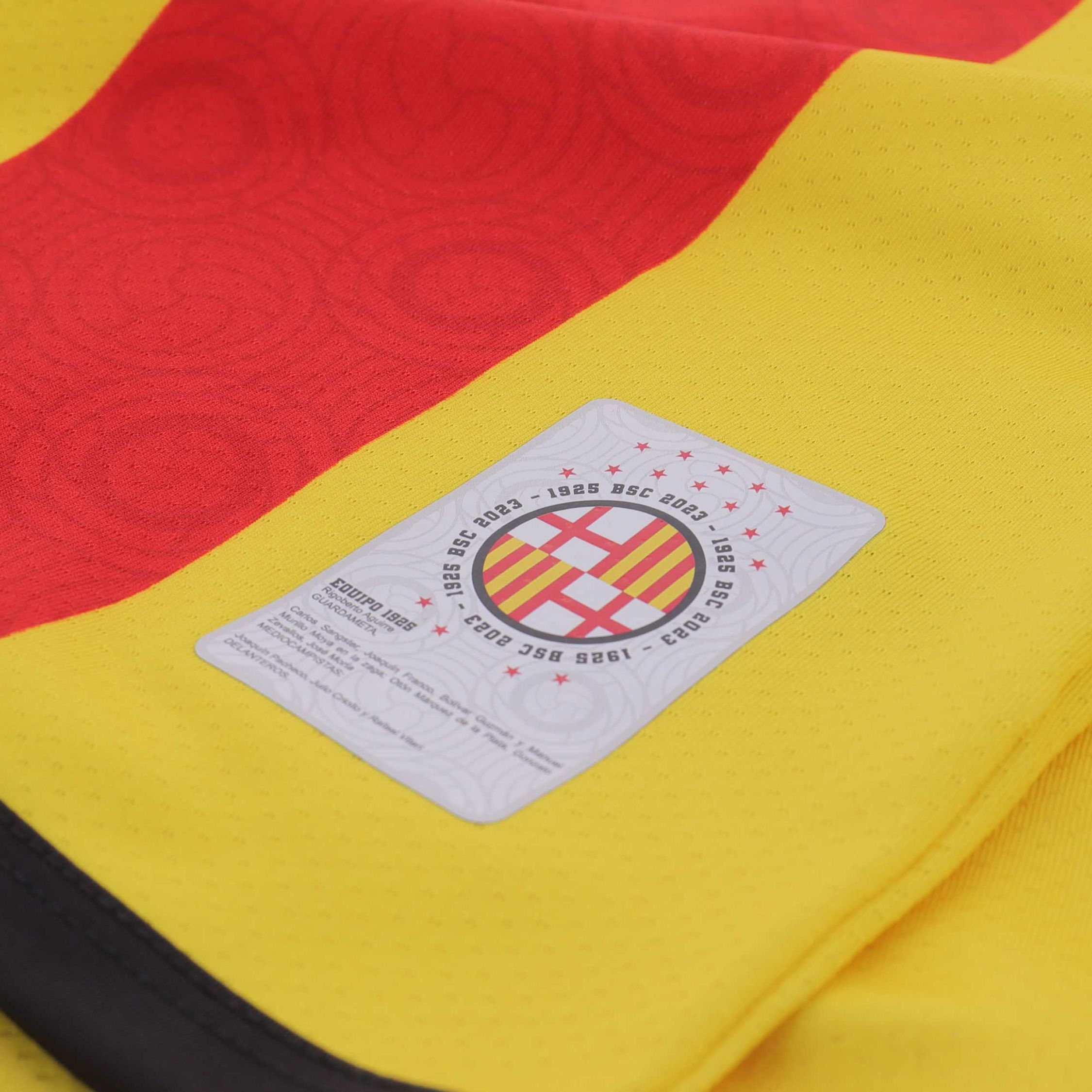 The Marathon logo is displayed in retro style alongside the historical shield of Barcelona, inspired by the year 1936. The back of the shirt displays "2023" as the year of its release.