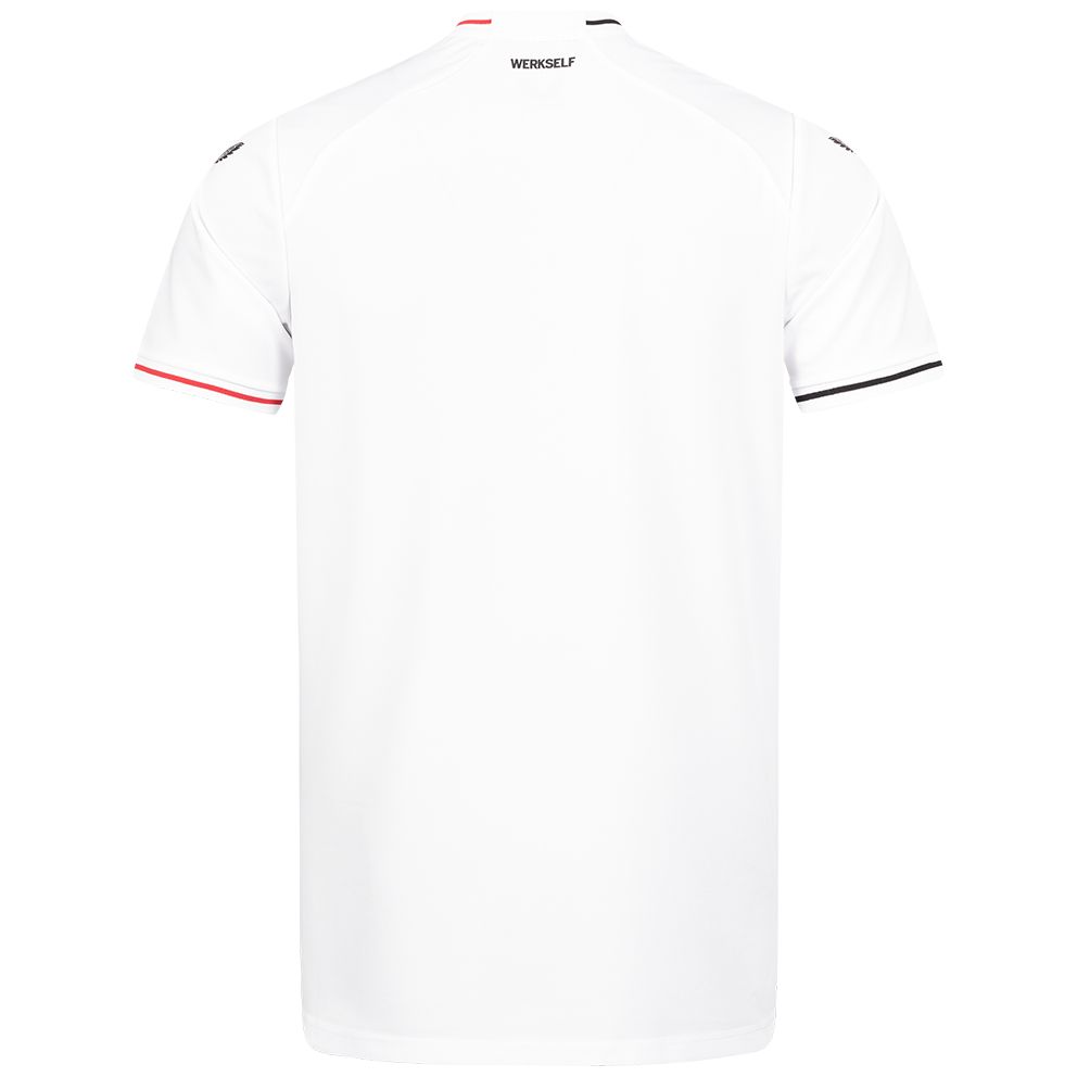 Produced by Castore, the white design is decorated with red and black trim - with both used on the neck - and features a fully coloured crest.