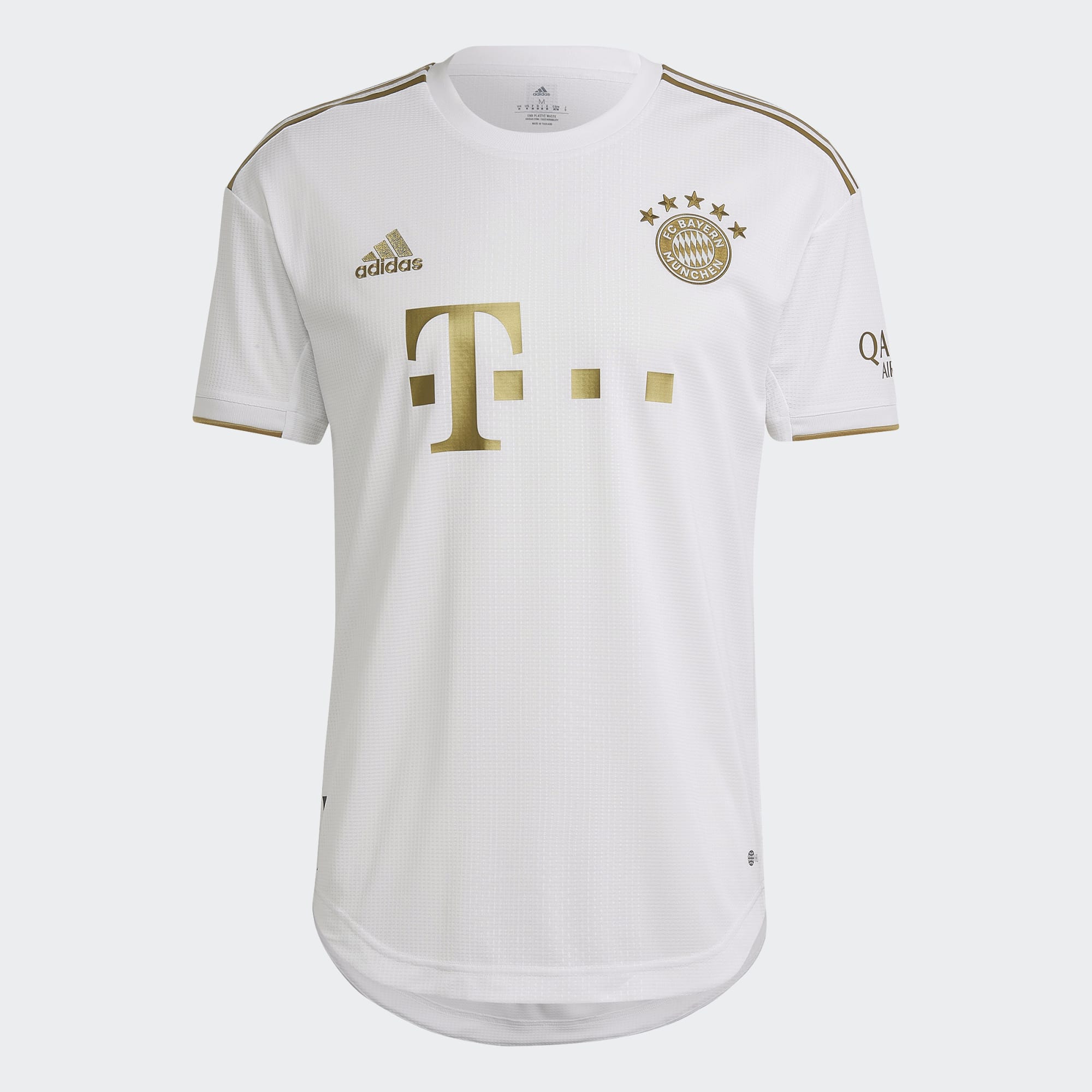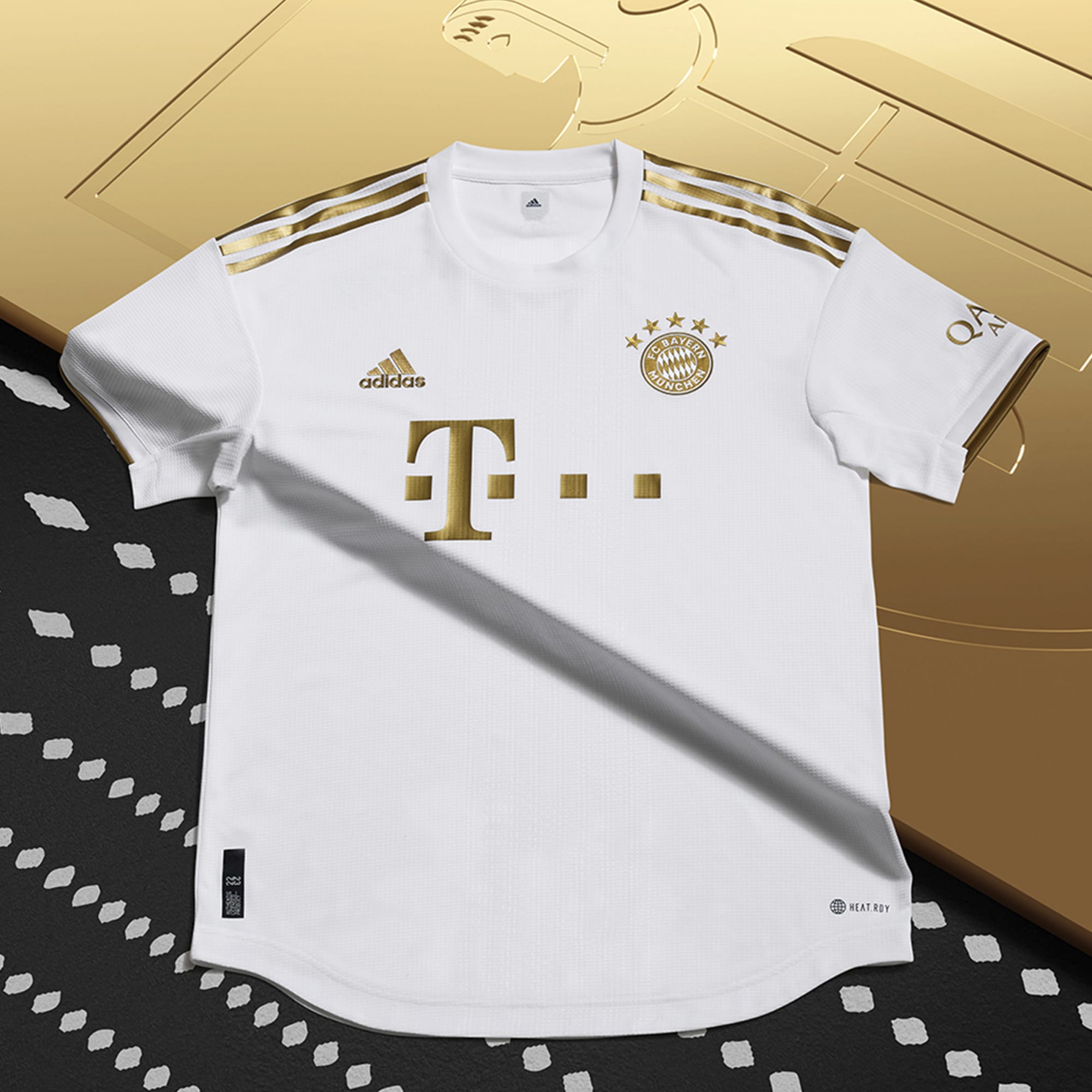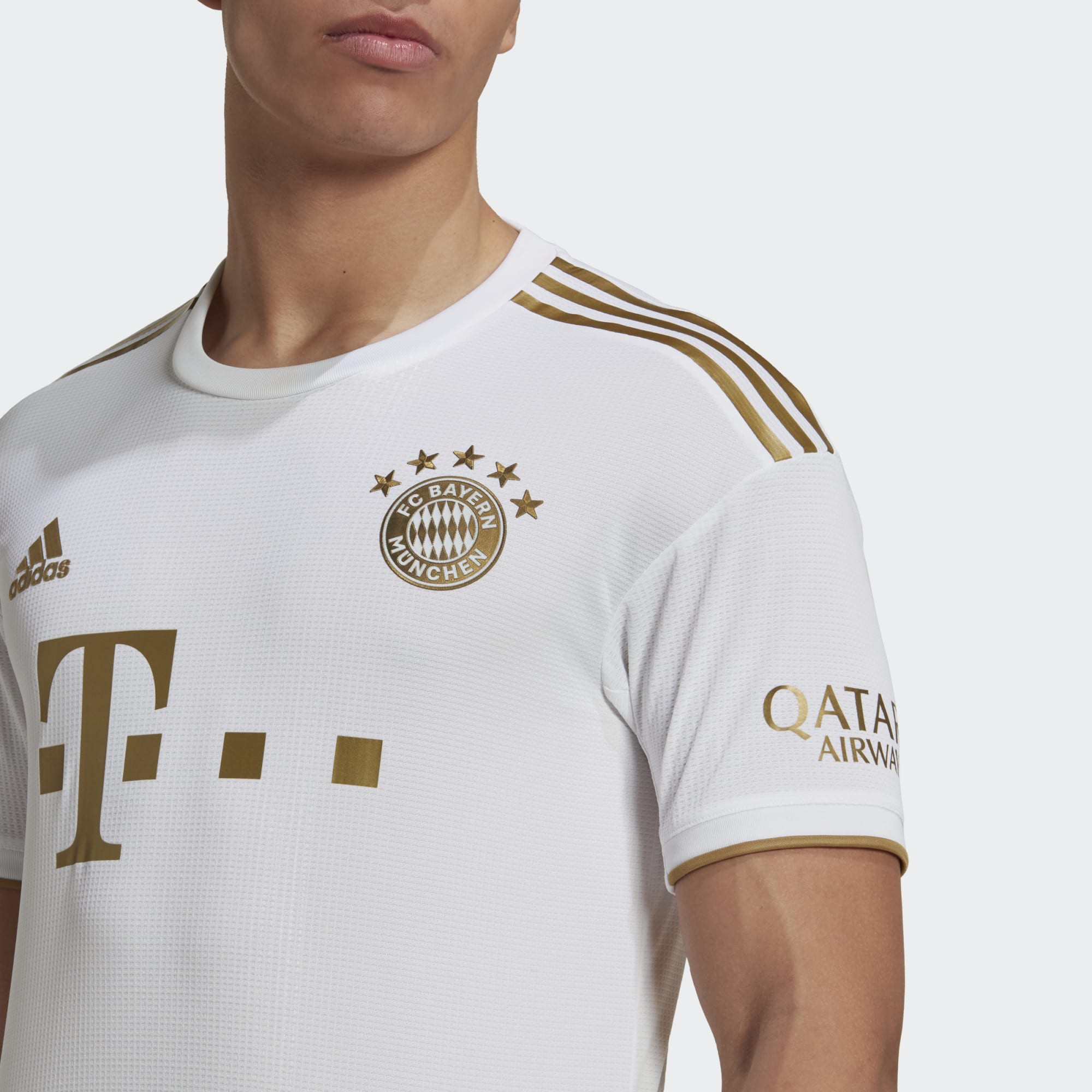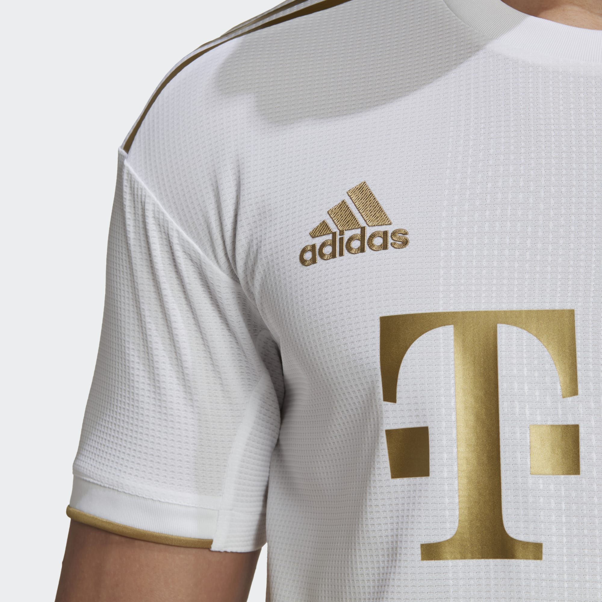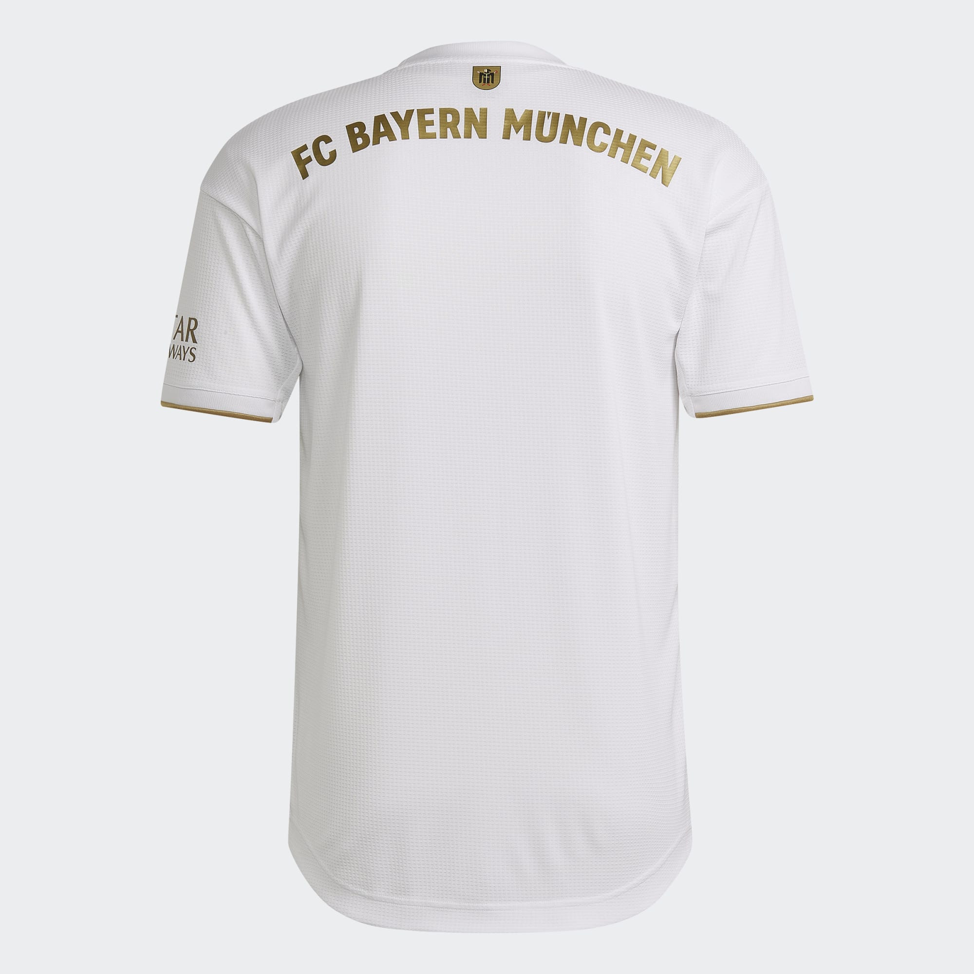 This season's Away jersey from adidas is white with golden accents, and once again the Münchner Kindl, the child of Munich that is the emblematic figure of the city, will adorn the back of the neck.