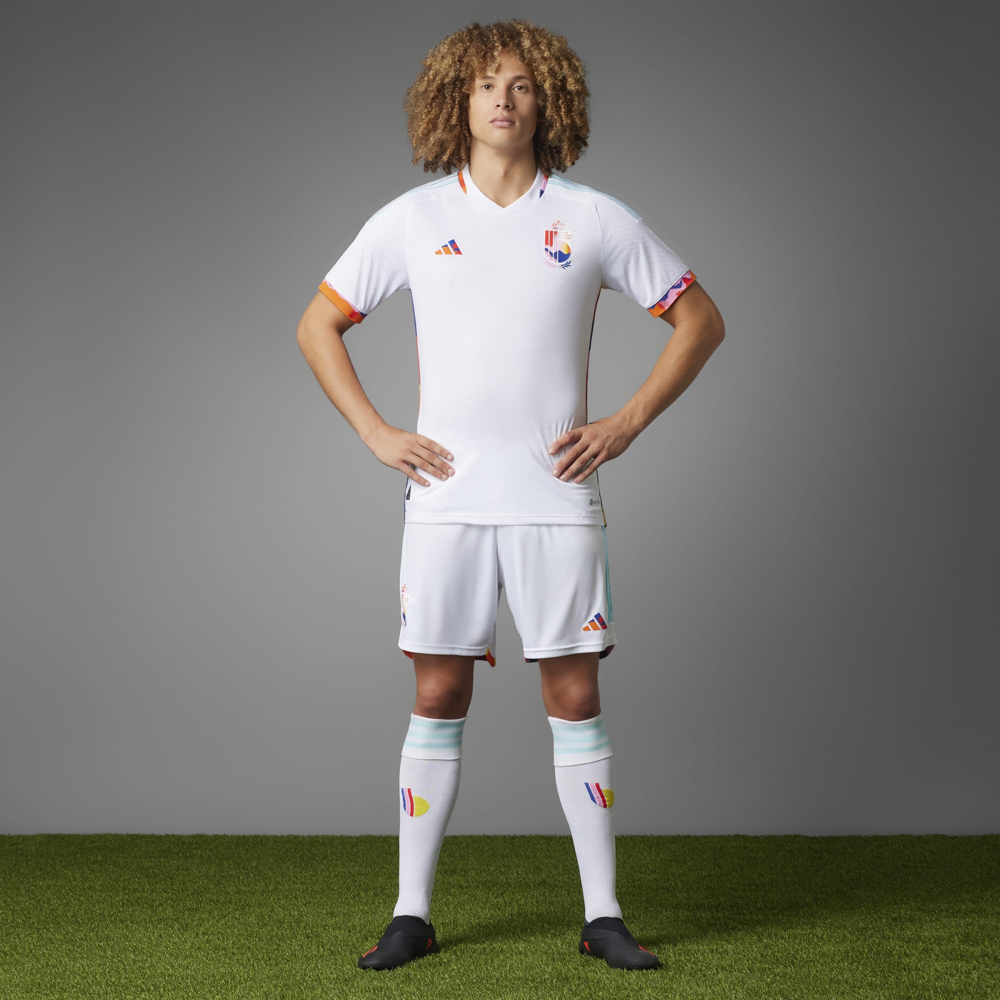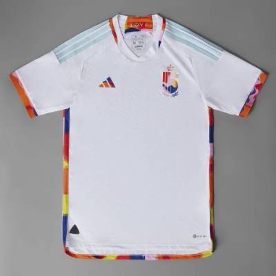 In white with multicoloured detailing - nodding to the fireworks at the Belgian “Tomorrowland” electronic-music festival - the Royal Belgian Football Association (RBFA) crest and German supplier adidas’s “3 Bar” logo keep to this unconventional styling.