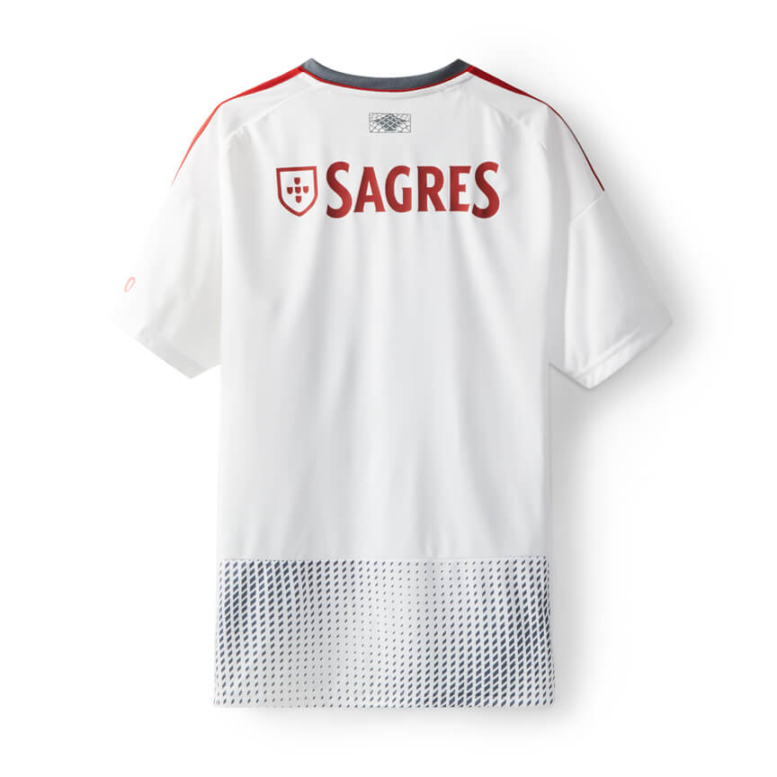 The crest is fully coloured, while the logos of the club partners - the “sponsors” - are in red, the upper back features a nod to the paving of Lisbon’s walkways, the inspiration for the shirt, and the neck is also in grey.