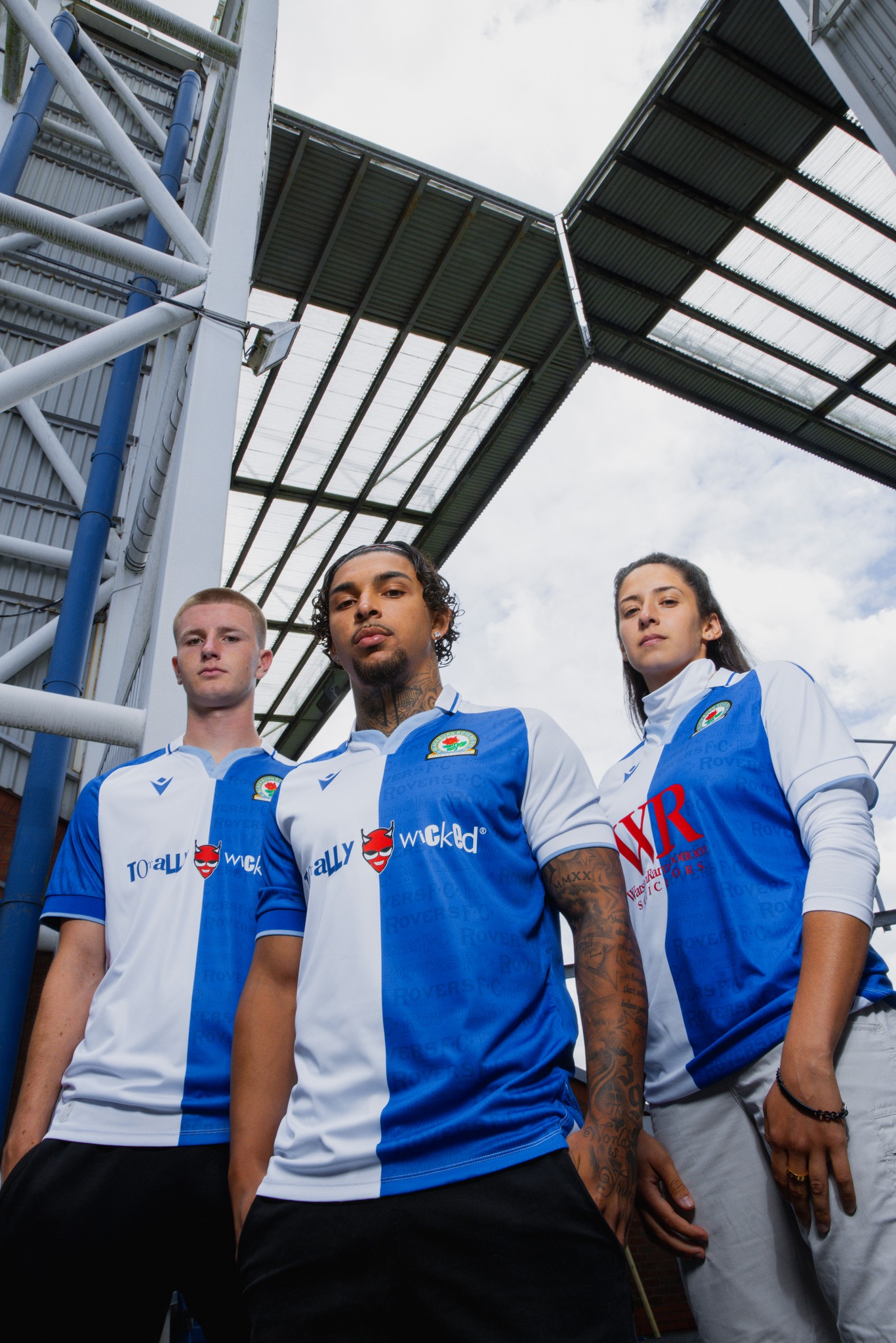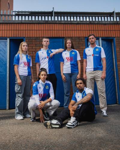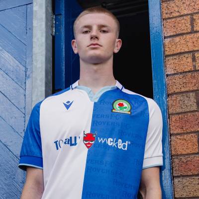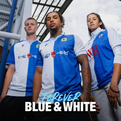 As a tribute to the club's history, the words "ROVERS F.C." are printed on the back of the neck and within the blue half of the shirt, using the same font seen near the stadium's Jack Walker statue.