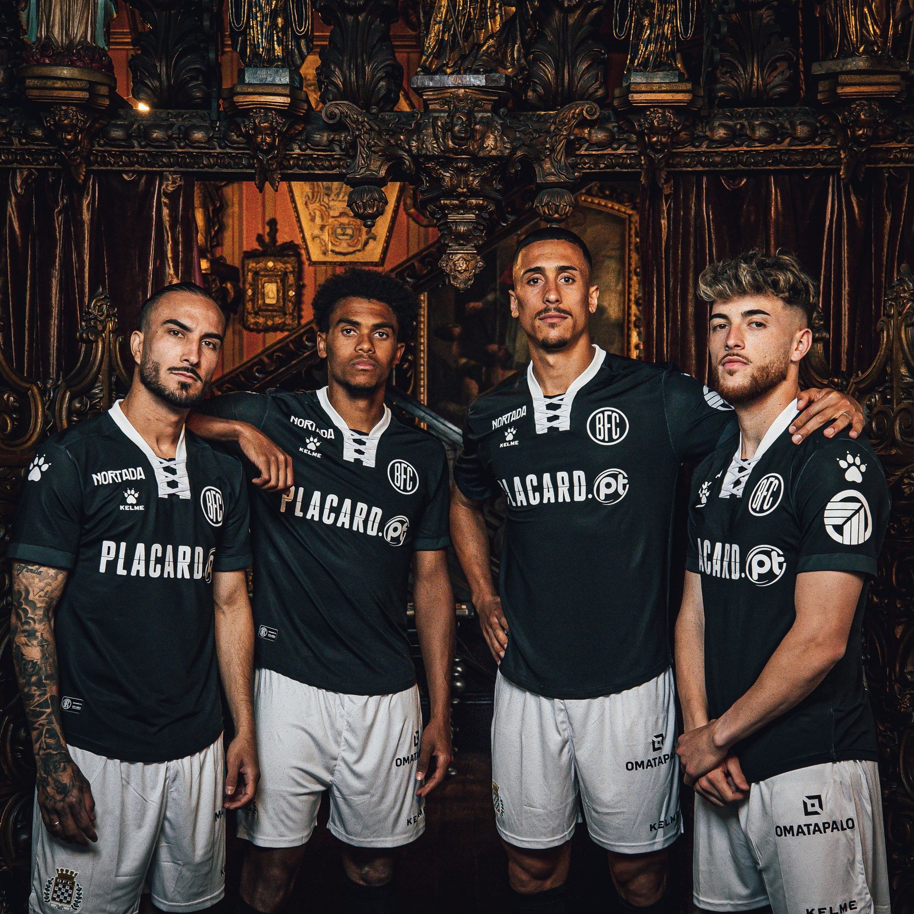 The crest is a simple white encircled “BFC”, again nodding to the early look of the team and matching the shorts of a kit that will be completed with black socks, worn against Braga this coming weekend and be available as a change in 2023-24.