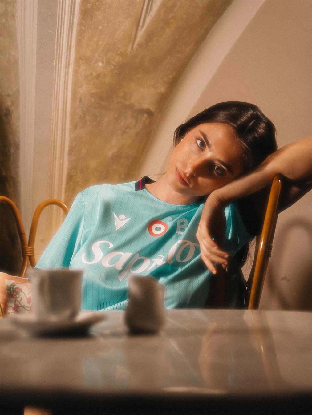 The kit is completed with turquoise shorts and socks, both detailed with red and blue elements and the Macron Hero. Bologna branding is added to the socks on the front. Constructed using Eco Fabric, derived entirely from recycled polyester, the shirt incorporates Eco Exalock technology to combine performance, comfort, and sustainability.