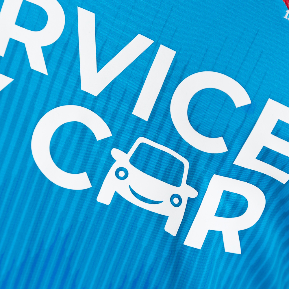 Designed by Macron and featuring the logo of principal partner Service My Car, the bold away-day look for the 2022/23 campaign is featuring a white v-neck collar and white sleeve cuffs.