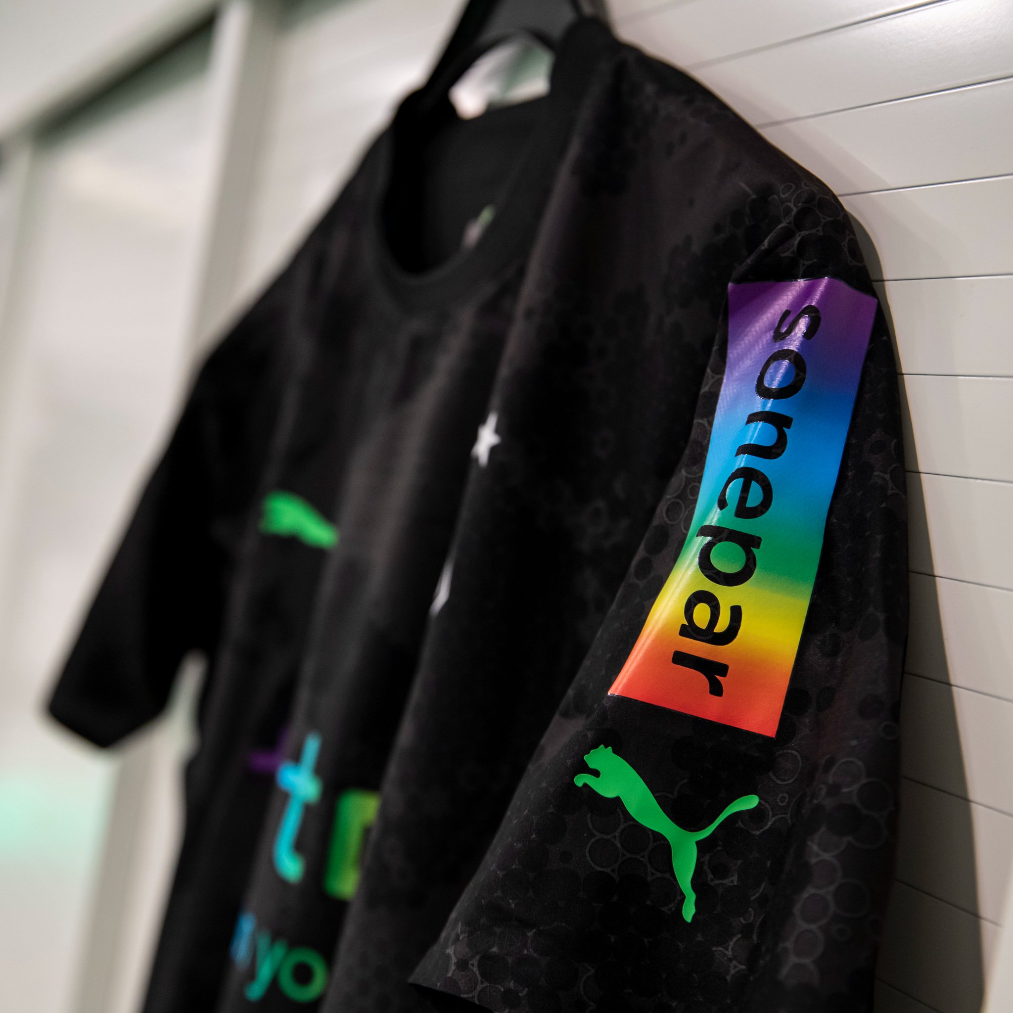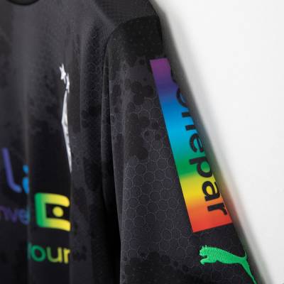 This is added to the corner flags of the match and the captains’ armbands being rainbow coloured, while the Puma logos and the MÖNCHENGLADBACH print on the lower back of the anti-discrimination release are in green.