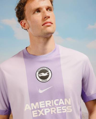 The kit is completed with matching purple shorts and socks, made using recycled polyester and Nike Dri-FIT technology, and displays “WE ARE BRIGHTON” inside the collar.