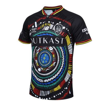 Made up in black and blue and with the different sponsors for the two sides, the impactful look of this 2023 New Balance release includes colourful graphical reproductions of traditional indigenous designs, with the usual logos and branding playing second fiddle in white.