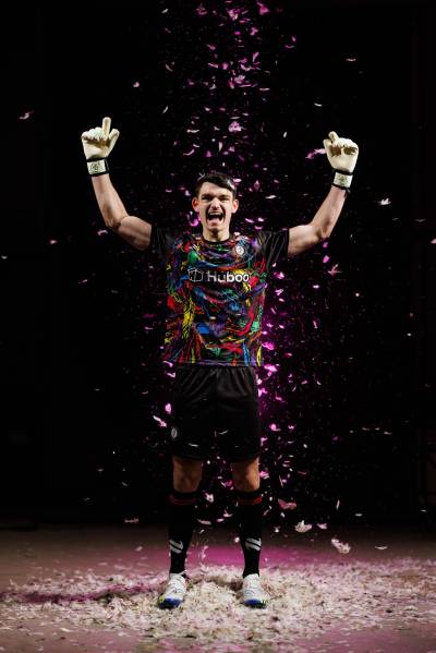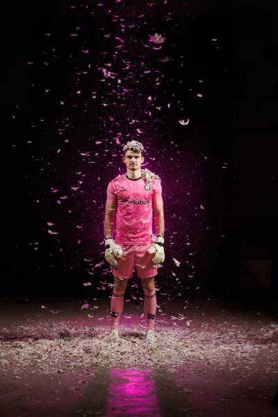 The brand-new home and away goalkeeper shirts for the Robins feature a bold feathered design, with a striking multi-coloured pattern for the home kit and a vibrant pink design for the away kit.