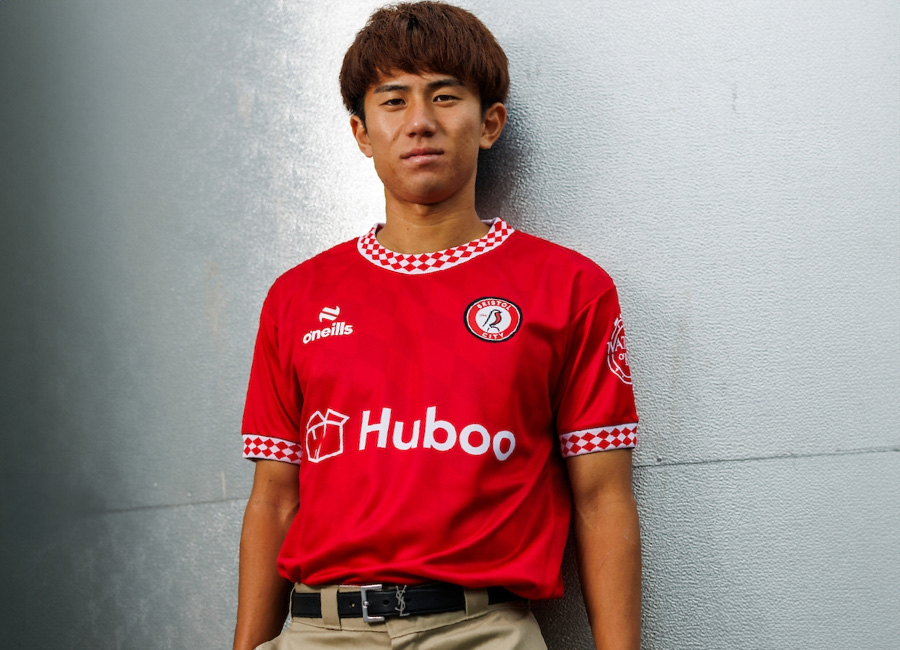 The design draws inspiration from the Clifton Suspension Bridge's criss-cross pattern, visible in the collar and cuffs' detailing. The jersey features a subtle pattern mimicking the flags flown around Ashton Gate on matchdays.