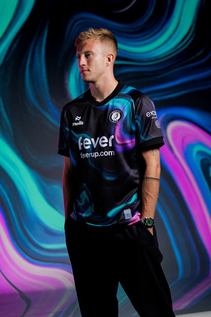 The club crest is positioned on the left chest in full colour, with the O’Neills logo on the right and front-of-shirt sponsor Fever displayed centrally in white. On the back, the message ‘Always Believe’ is placed just below the neckline. Additional branding includes GoSkippy on the lower back and Expleo on the sleeves.