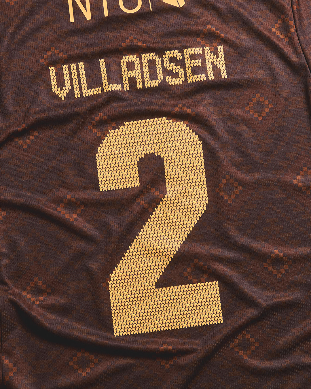 The new Brøndby jersey moves away from the club’s traditional yellow and blue palette, presenting a dark brown base with an all over tonal geometric pattern. Repeating diamond motifs are integrated across the fabric, creating a textured visual effect. The Brøndby crest appears on the left chest in a single colour gold execution, accompanied by the hummel logo on the opposite side.