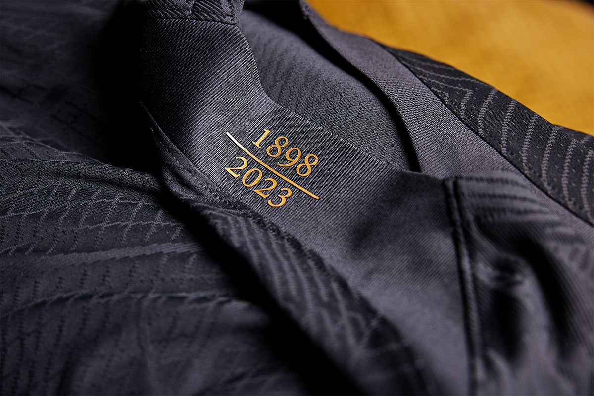The front of the jersey is adorned with DNA stripes, while the back of the neck features the years 1898 and 2023.