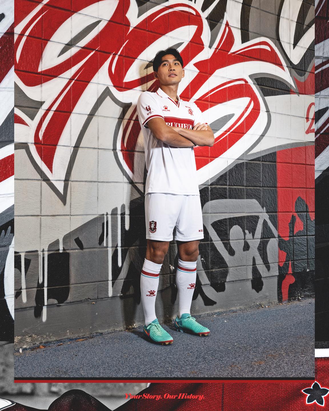 Limiting the crest to a simple monogram version, the familiar black is eschewed entirely and the collared shirt - nodding to the spiritual 1995 beginnings - forms a kit with matching shorts and socks.