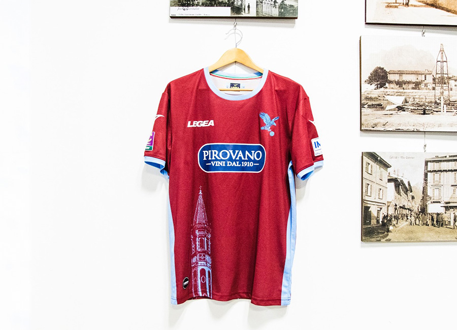 On the front, beneath the sponsor Pirovano, is an image of the San Nicolò bell tower, known as the ‘matitone,’ one of Italy's tallest bell towers. The back of the shirt, beneath the sponsor Galperti, showcases the outline of the Resegone mountain, which frames the city’s skyline. The club's iconic eagle logo is displayed over the heart.