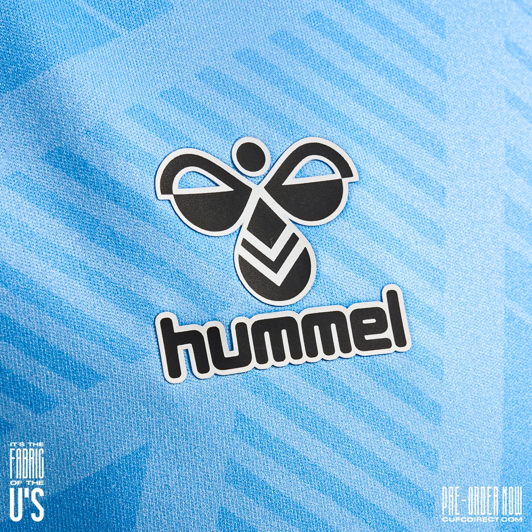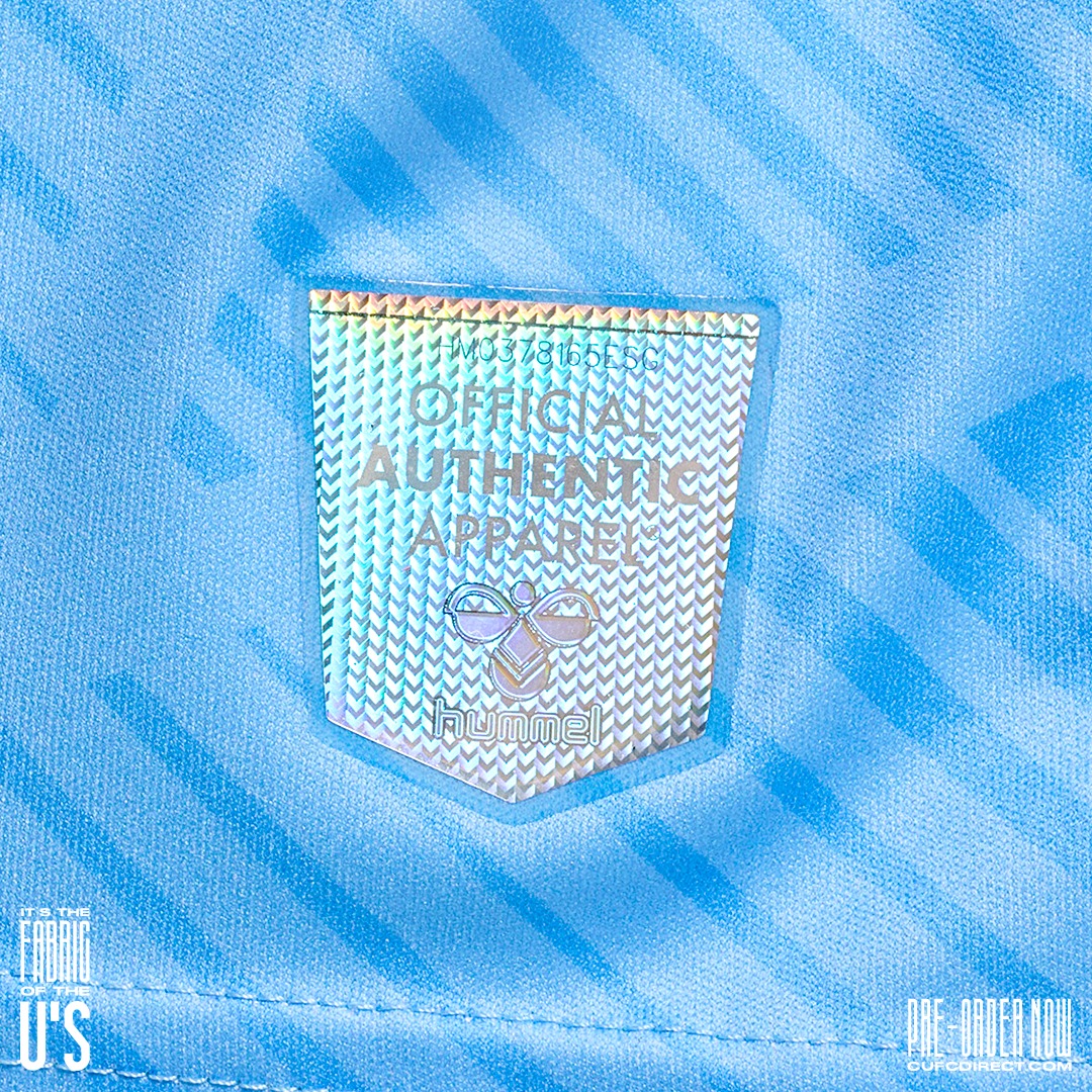 Working closely with technical partners hummel, the fully sublimated Alaskan blue front panel incorporates a diagonal geometric design, adding a modern slant to the retro inspiration.