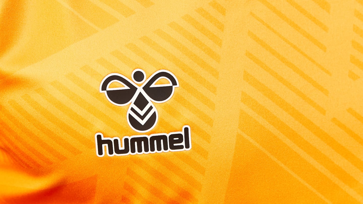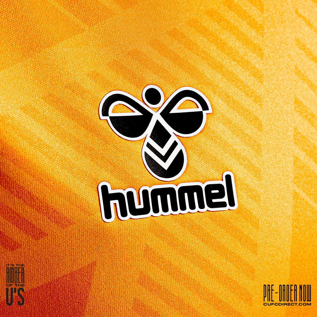 Working closely with technical partners hummel, the fully sublimated front panel incorporates a diagonal geometric design in a deeper shade of amber to add a modern element to the retro-inspired jersey.